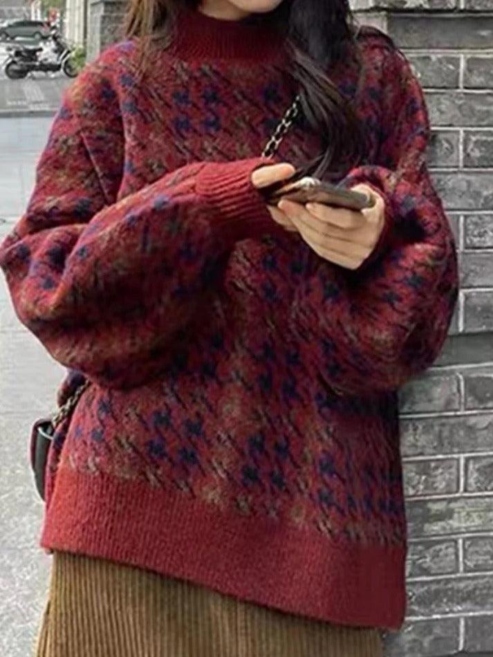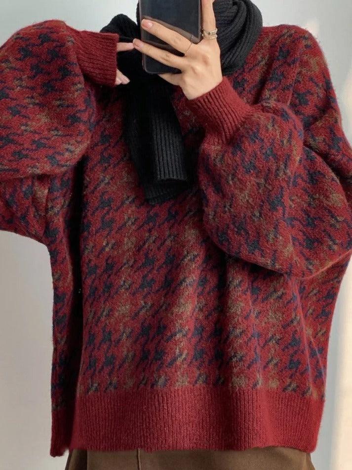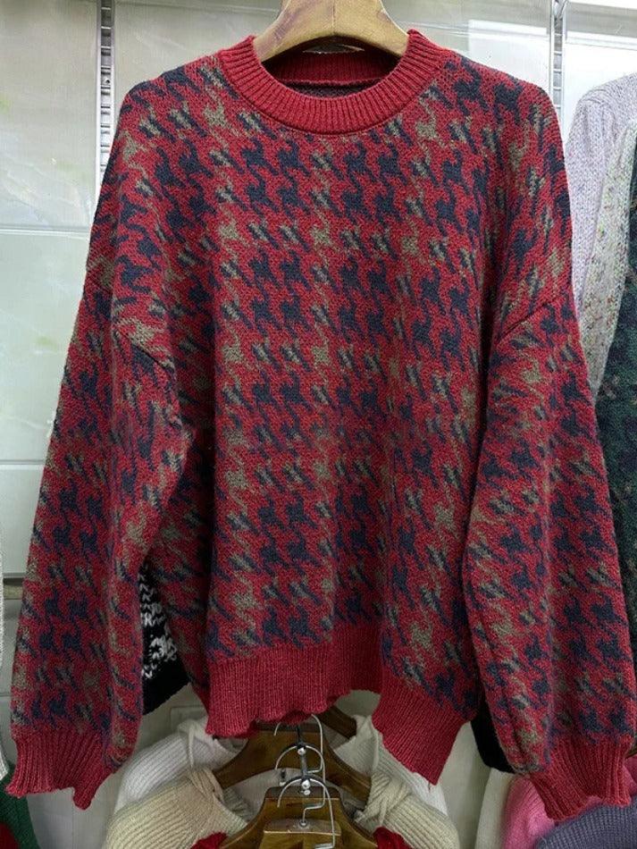 Houndstooth Crew Neck Knit Sweater
