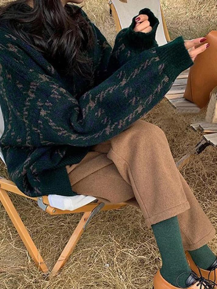 Increase quantity for Houndstooth Crew Neck Knit Sweater