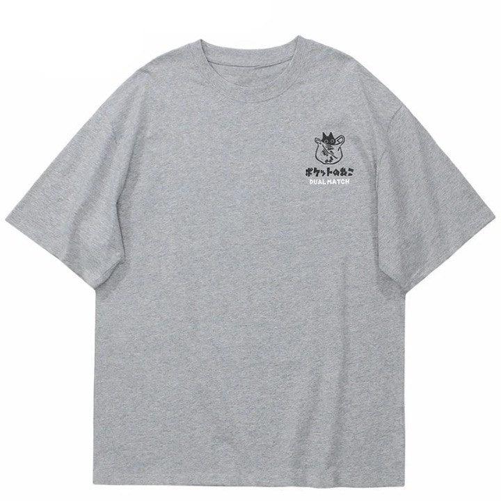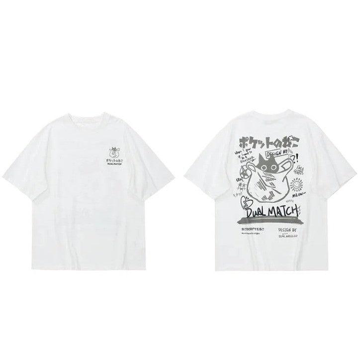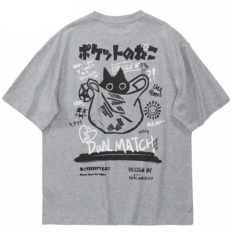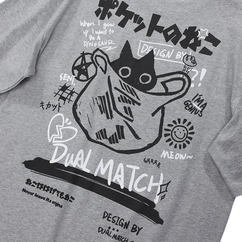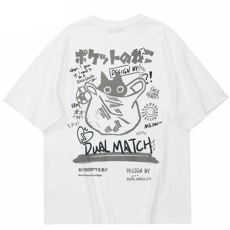 Discover unique style with Vonvex's Japanese Funny Cat Printed T-Shirt. Vintage charm meets gothic vibes in soft cotton broadcloth fabric.