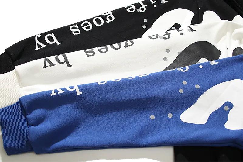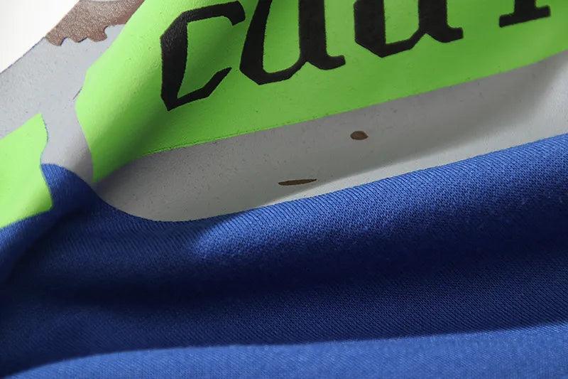 This Kid Cudi Letter Foam Fleece Hoodie is made of a blend of cotton and polyester. with a printed pattern. It is designed with a loose fit. a hooded collar. and regular sleeves. This piece features a fleece-style thickness.