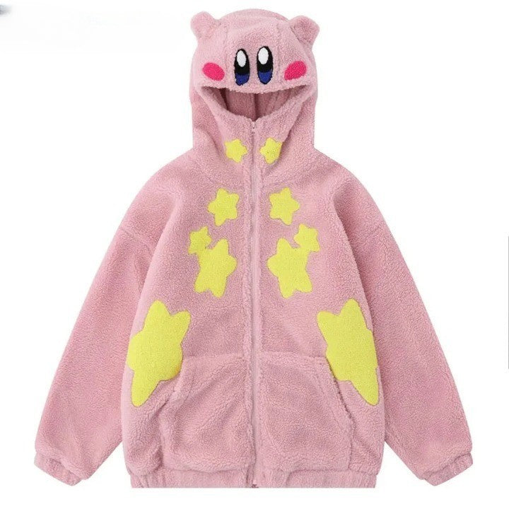 The Kirby Cozy Plush Hoodie offers ultimate comfort with its plush. soft fabric and playful charm. perfect for staying warm and cute on chilly days.