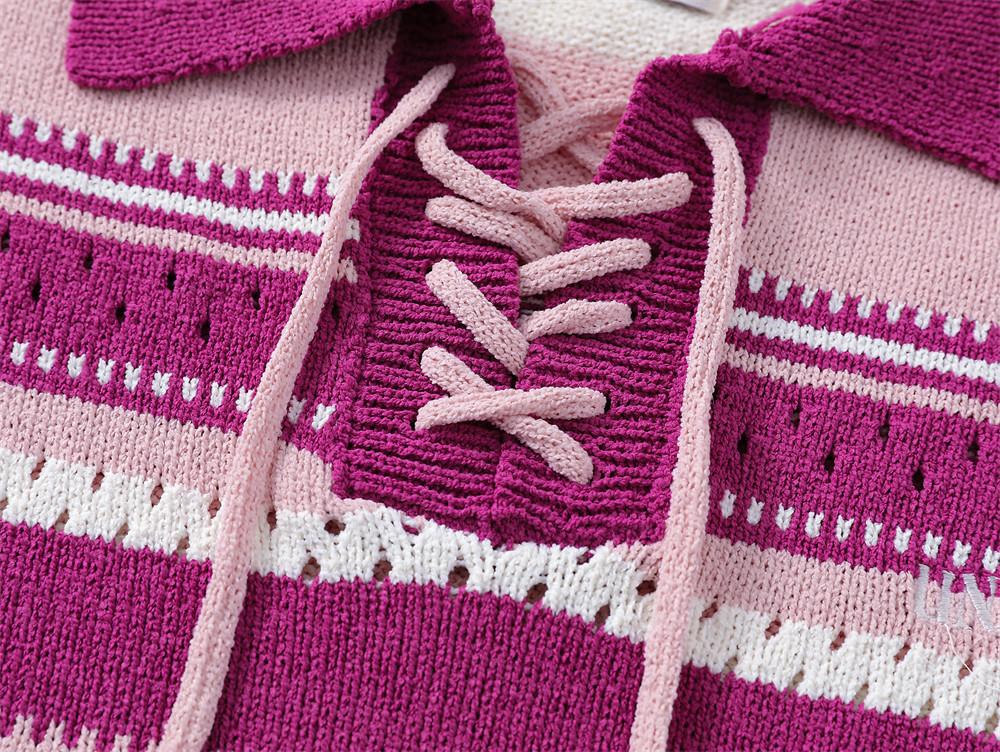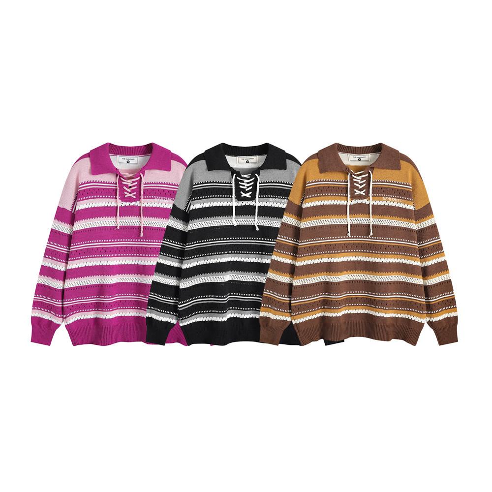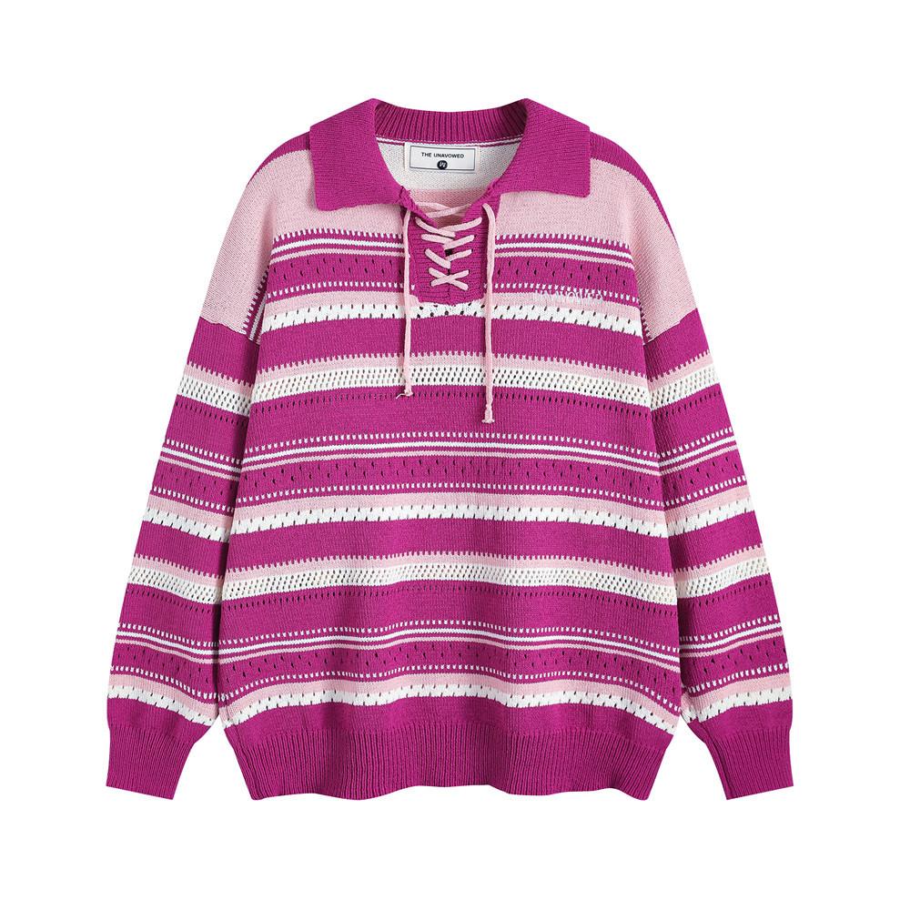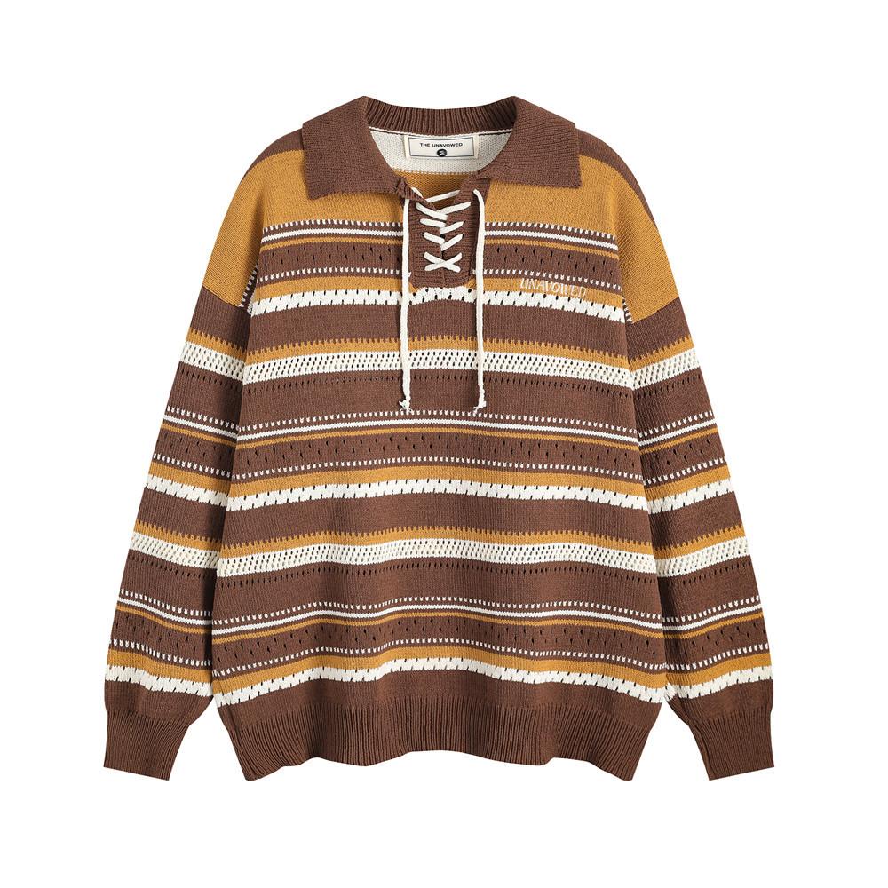 Knitted Lace-Up Polo Sweater: Classic meets modern with a cozy knit. stylish lace-up front. and timeless polo collar.