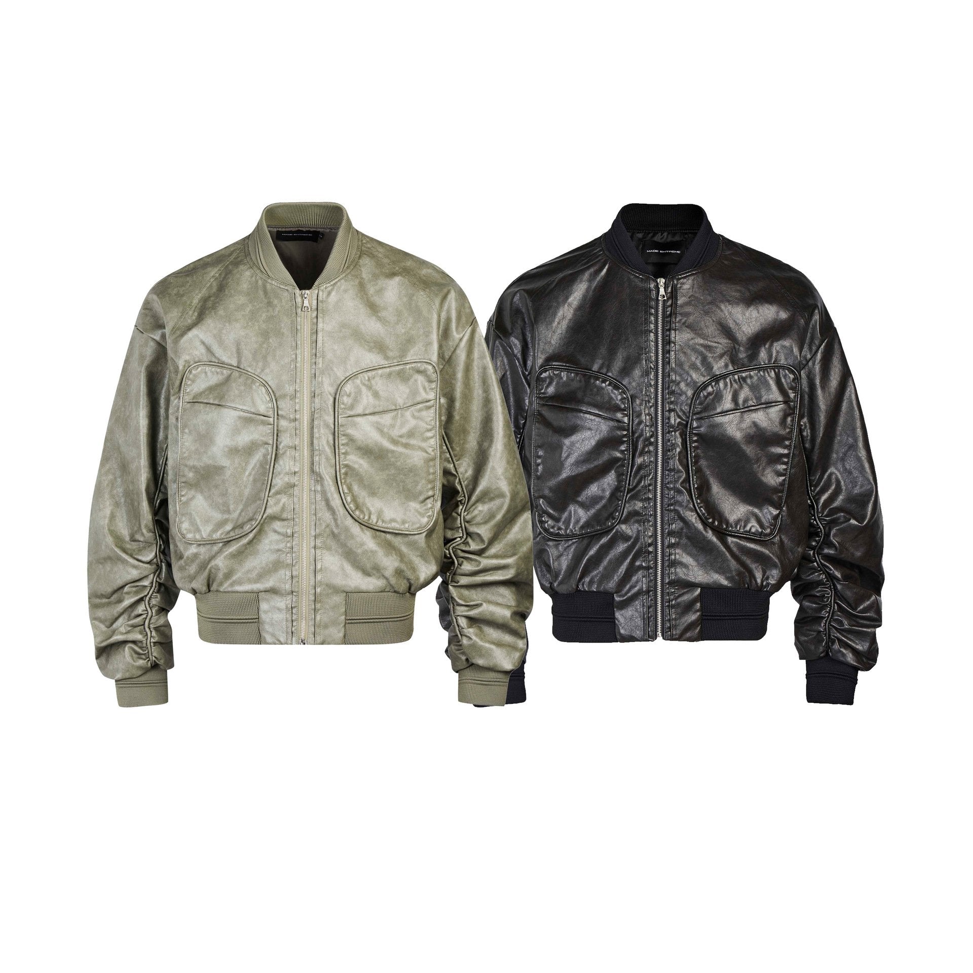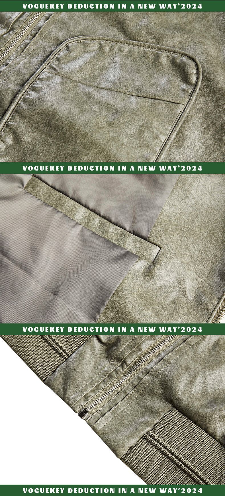 Large Pocketed Winter Leather Jacket: Crafted from 100% polyester for durability and warmth. this jacket features large pockets for added functionality and a sleek. leather-inspired finish. Ideal for cold weather with a bold. utilitarian design.