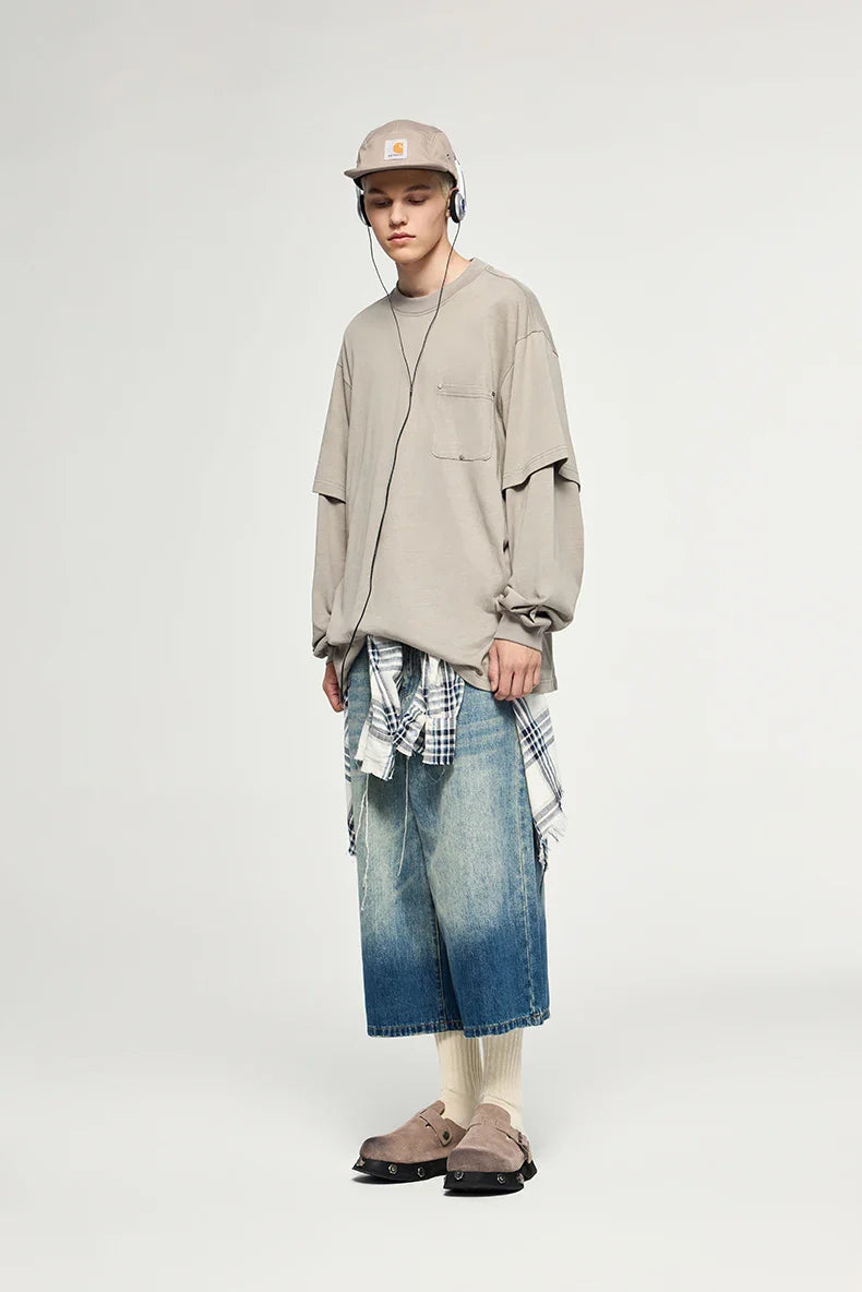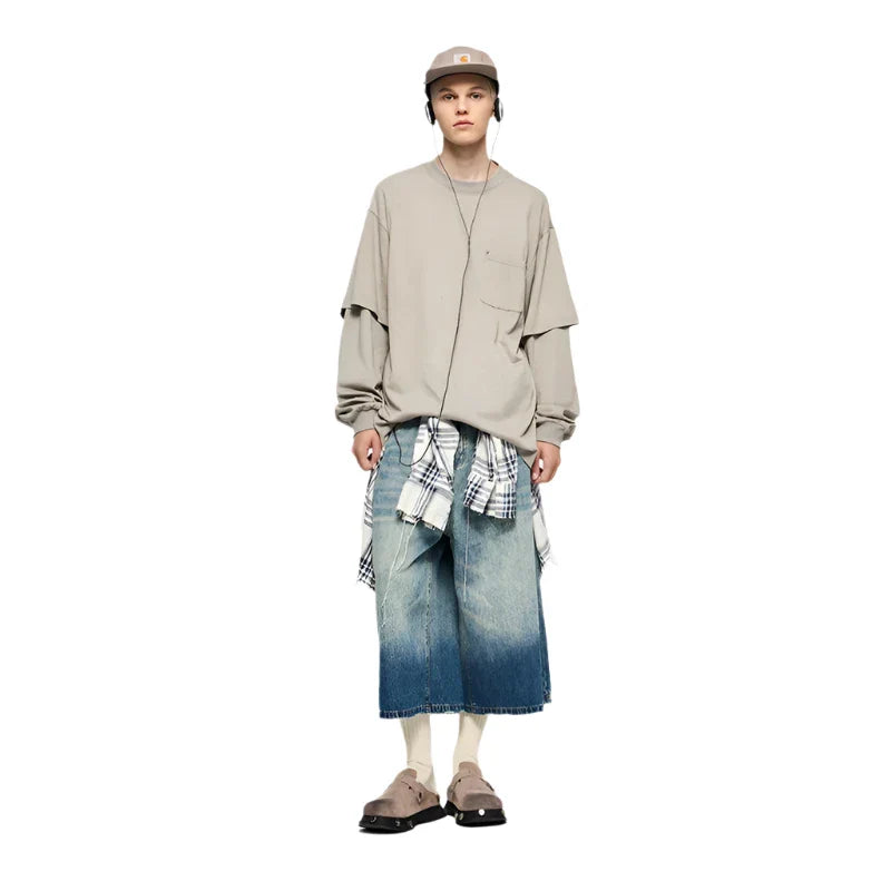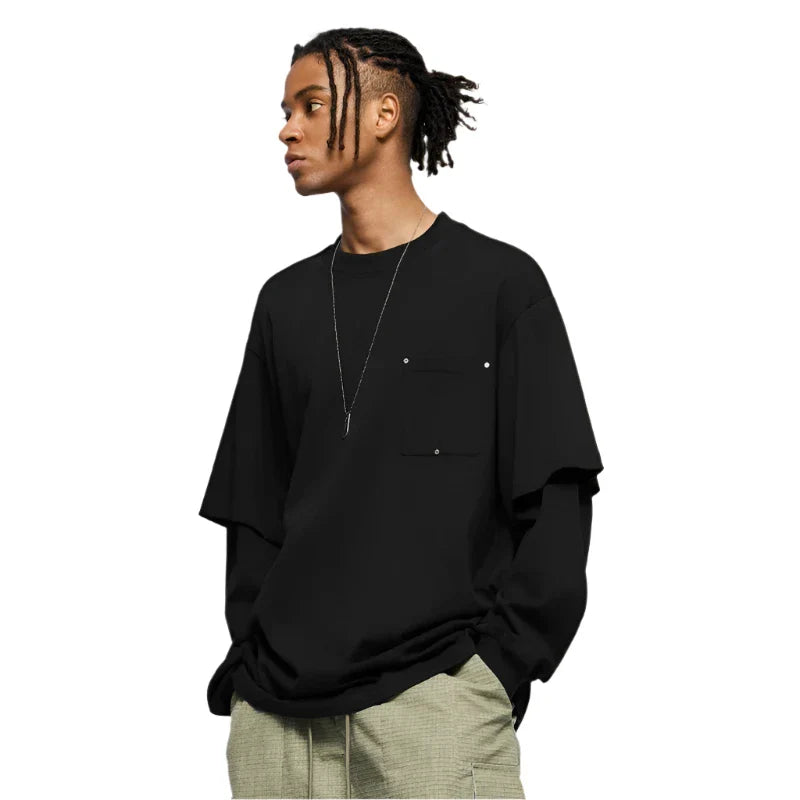Upgrade your streetwear look with the Layered Edge Long Sleeve T-Shirt. Featuring bold. contrasting layers and a relaxed fit. it's a go-to for effortless style.