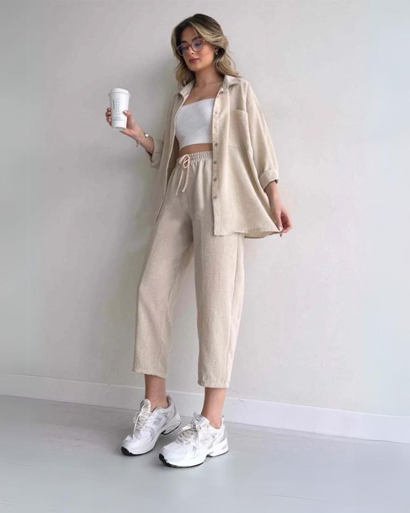 You can use the upper and lower parts of the set together or separately. creating different outfits. This enables several different style combinations that bring you choice and style for every day.