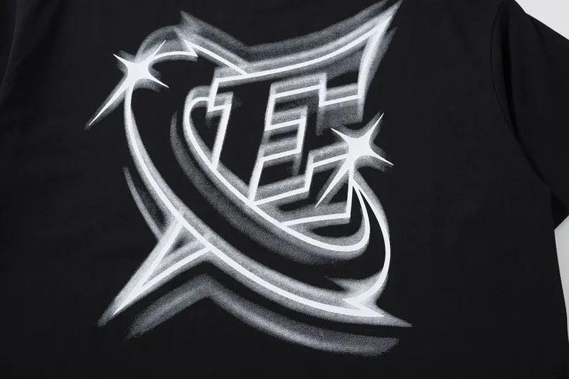 Letter Graphic Print Oversized T-Shirt: Embrace vintage street style with this cotton tee. featuring an O-neck. Broadcloth fabric. and bold letter pattern.