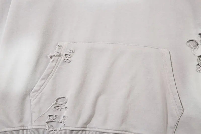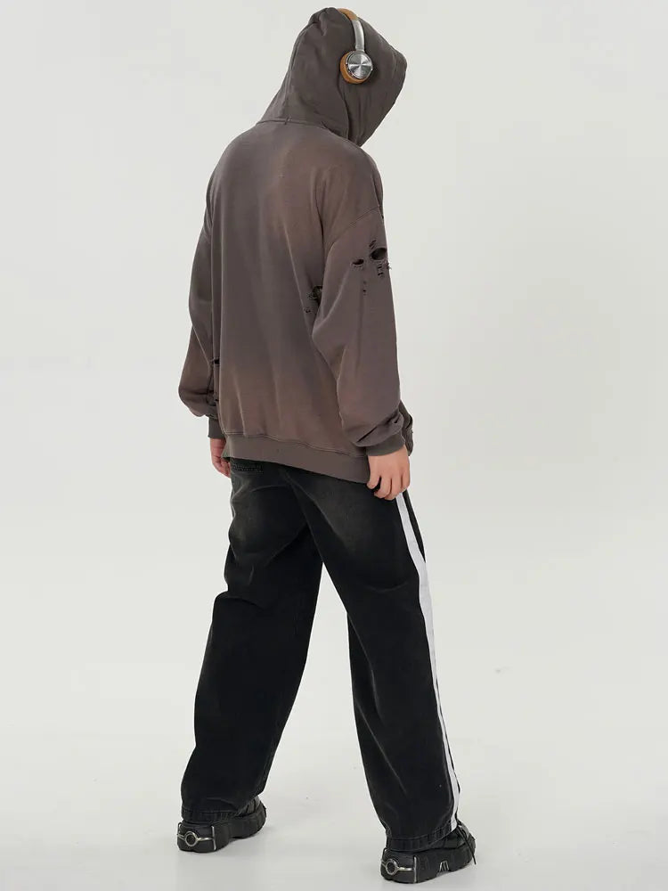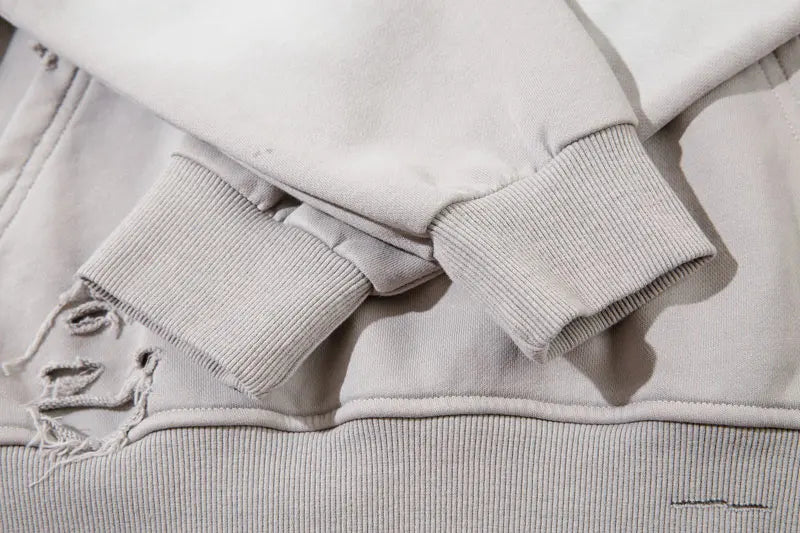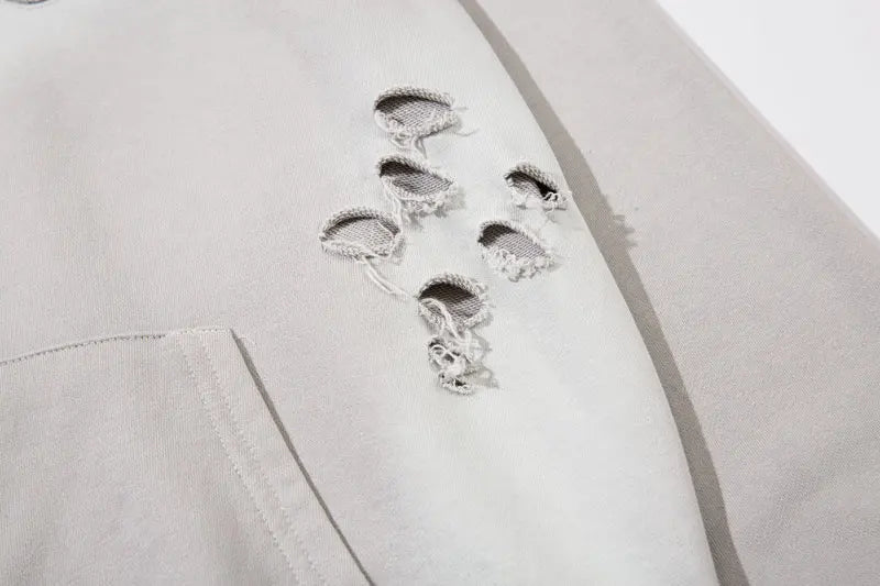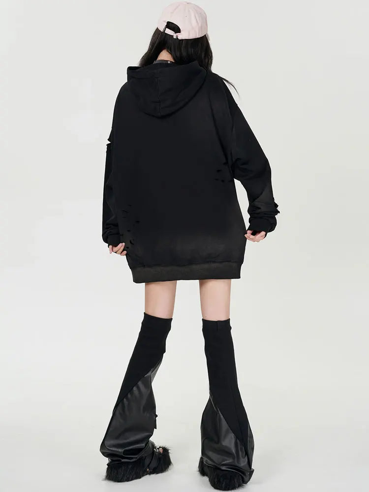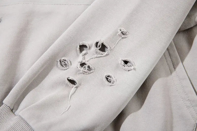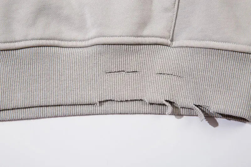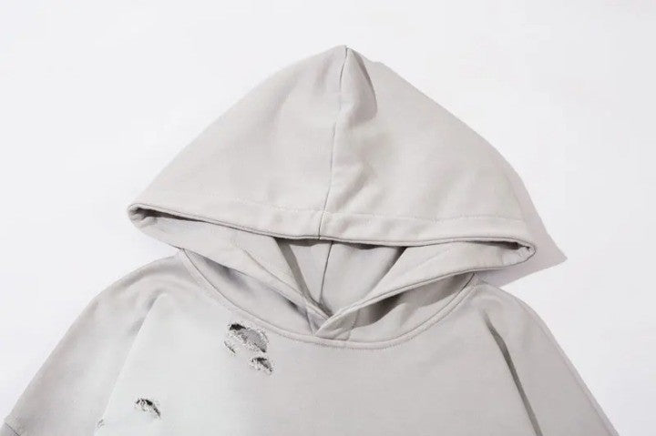 Elevate your streetwear with our Letter Patch Ripped Hoodie. Standard thickness. hooded. and crafted from a cotton-poly blend.