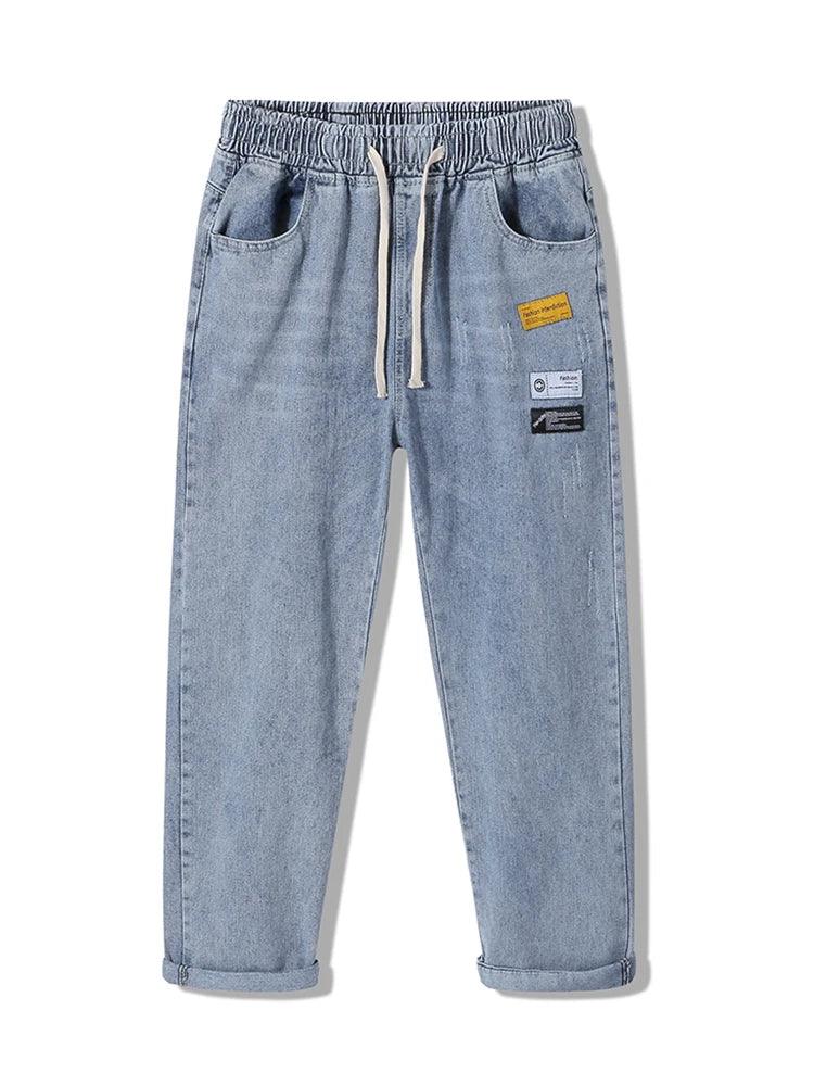 The pant features a zipper fly and is made of midweight denim material. With a plaid pattern and a loose fit. it boasts a mid-waist design for comfort and style.