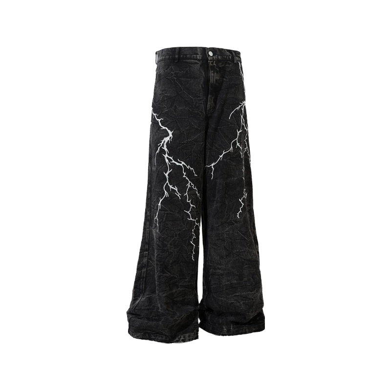 Lightning Strike Embroidered Jeans Electrify your style with bold lightning embroidery on premium denim. A striking blend of edge and sophistication.