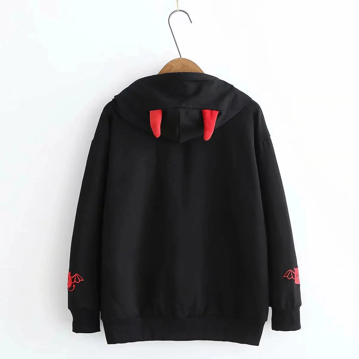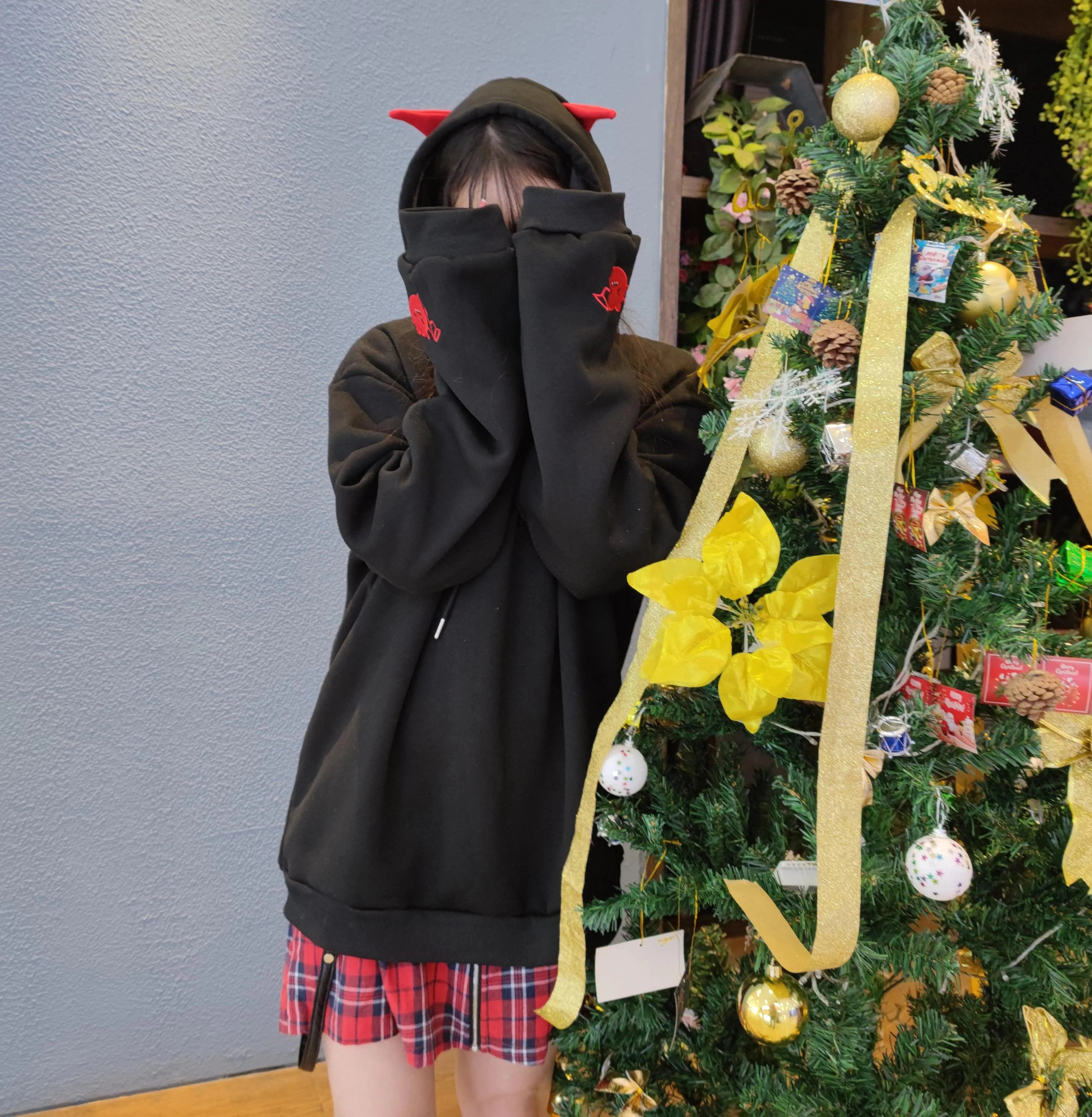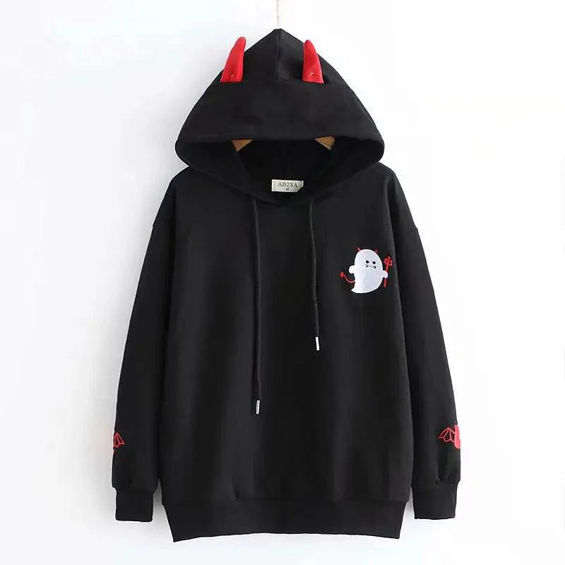 Elevate your style with our Little Devil Horns Gothic Hoodie. Crafted from a blend of Polyester and Cotton. it's thick. loose-fit. and hooded.