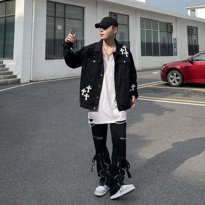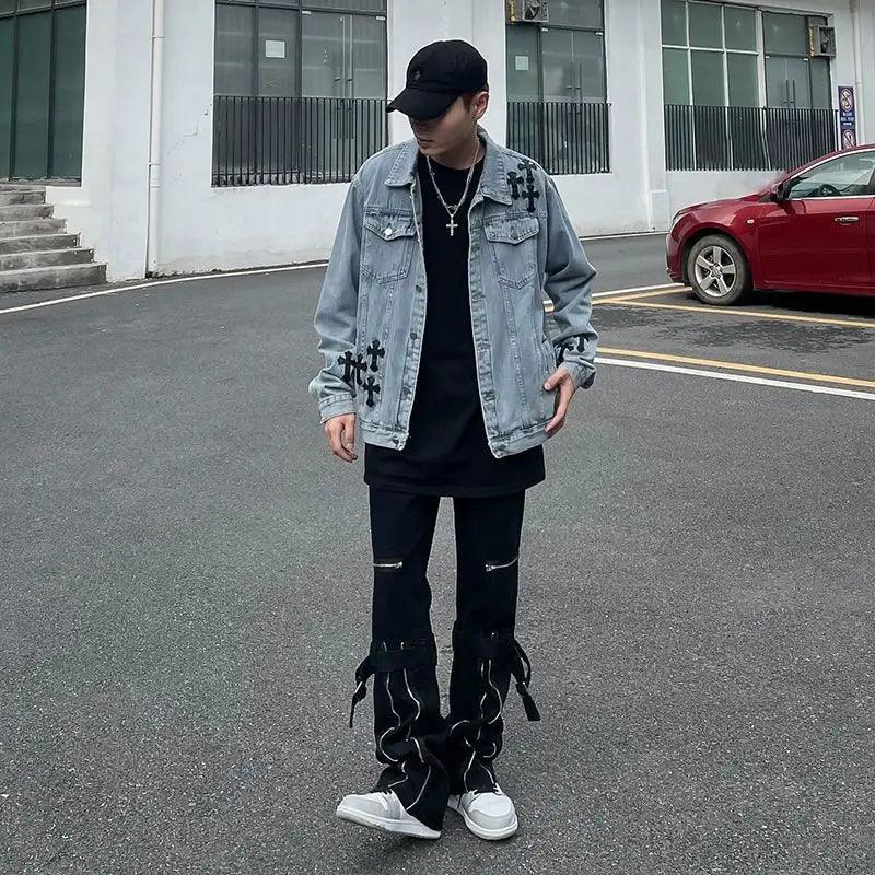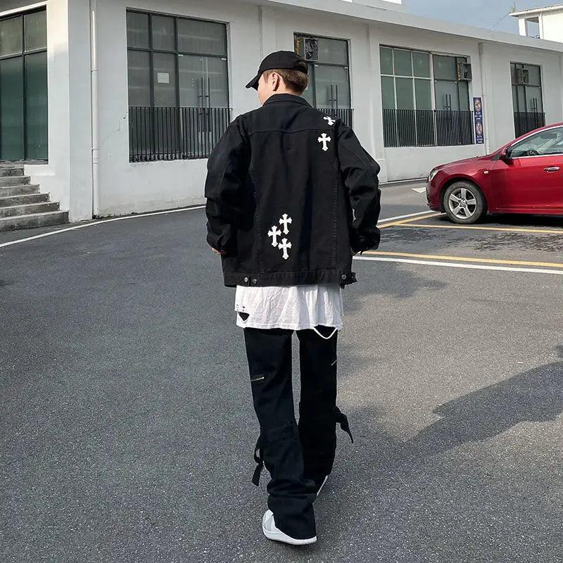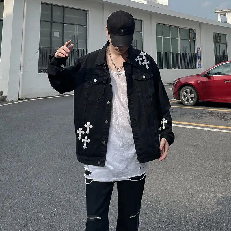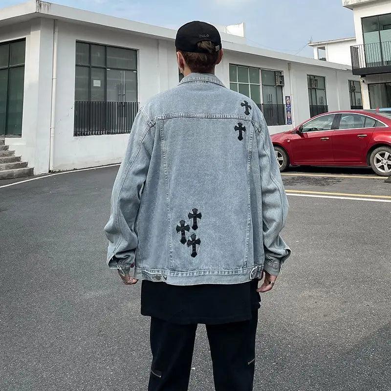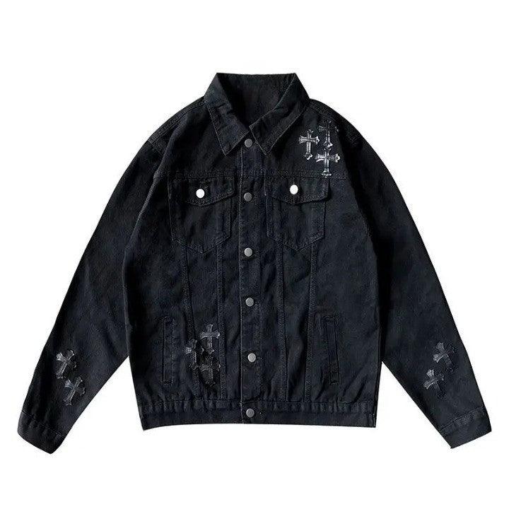 "Elevate your style with the Loose Embroidered Denim Jacket. blending vintage charm with modern flair. Crafted from cotton. featuring a turn-down collar and single-breasted closure. Gothic-inspired embroidery and patchwork add unique style. Perfect for adding an edgy vibe to your wardrobe."