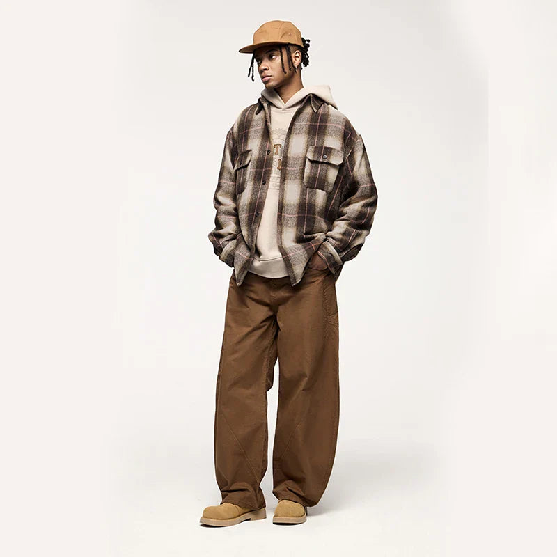 Stay cozy and stylish with the Loose Fit Brushed Plaid Shacket. Its oversized fit and soft brushed fabric make it the perfect layer for cool-weather streetwear looks.
