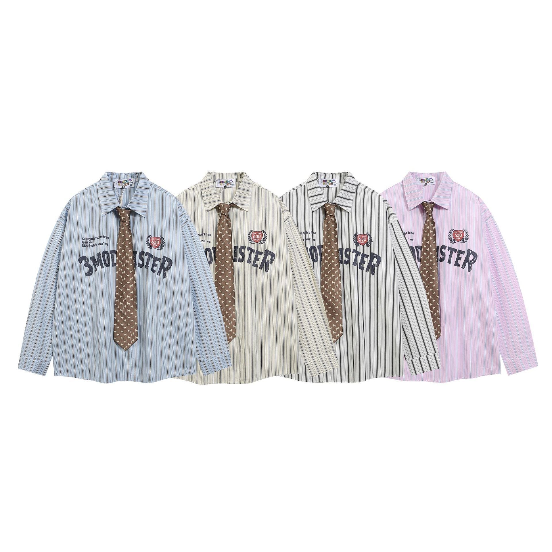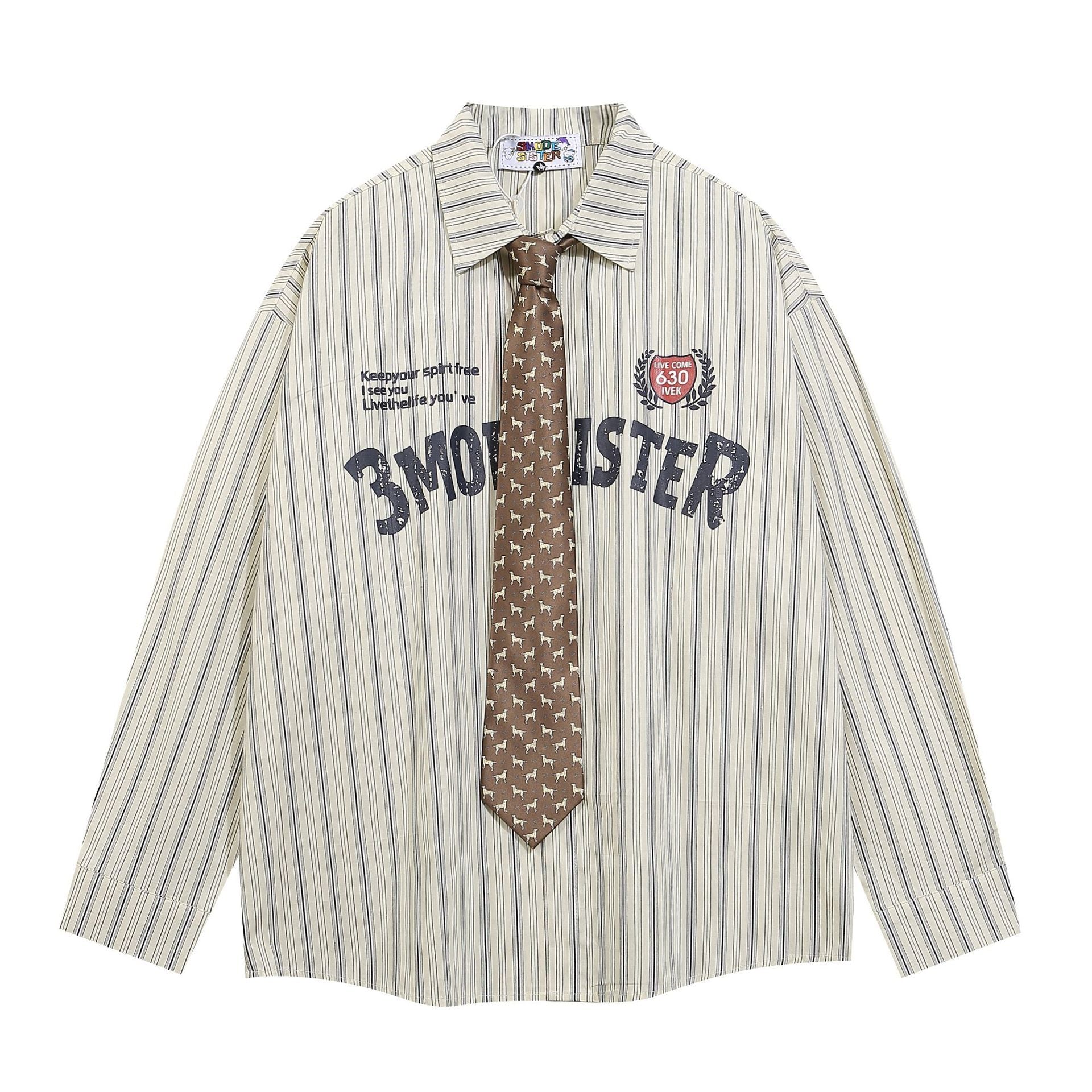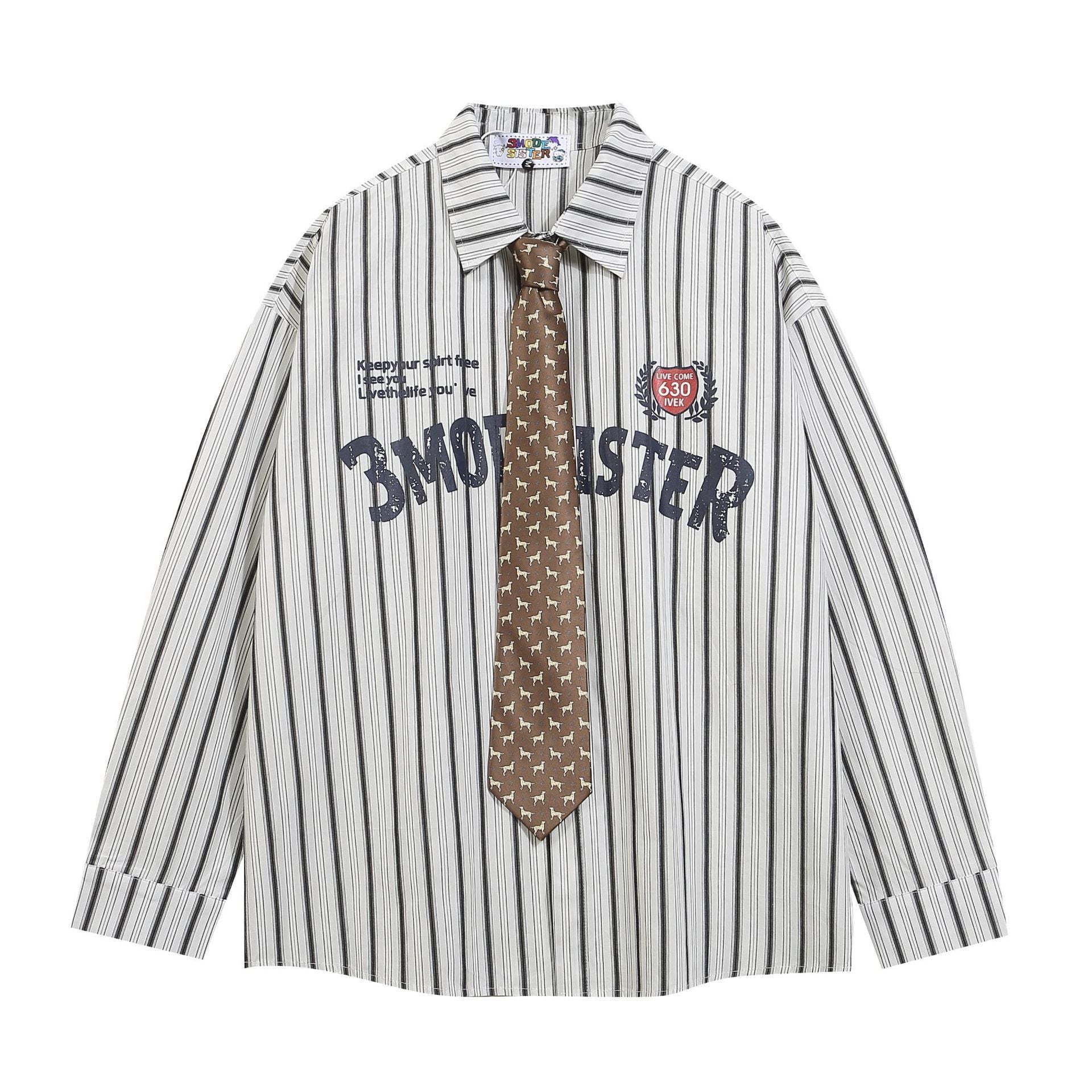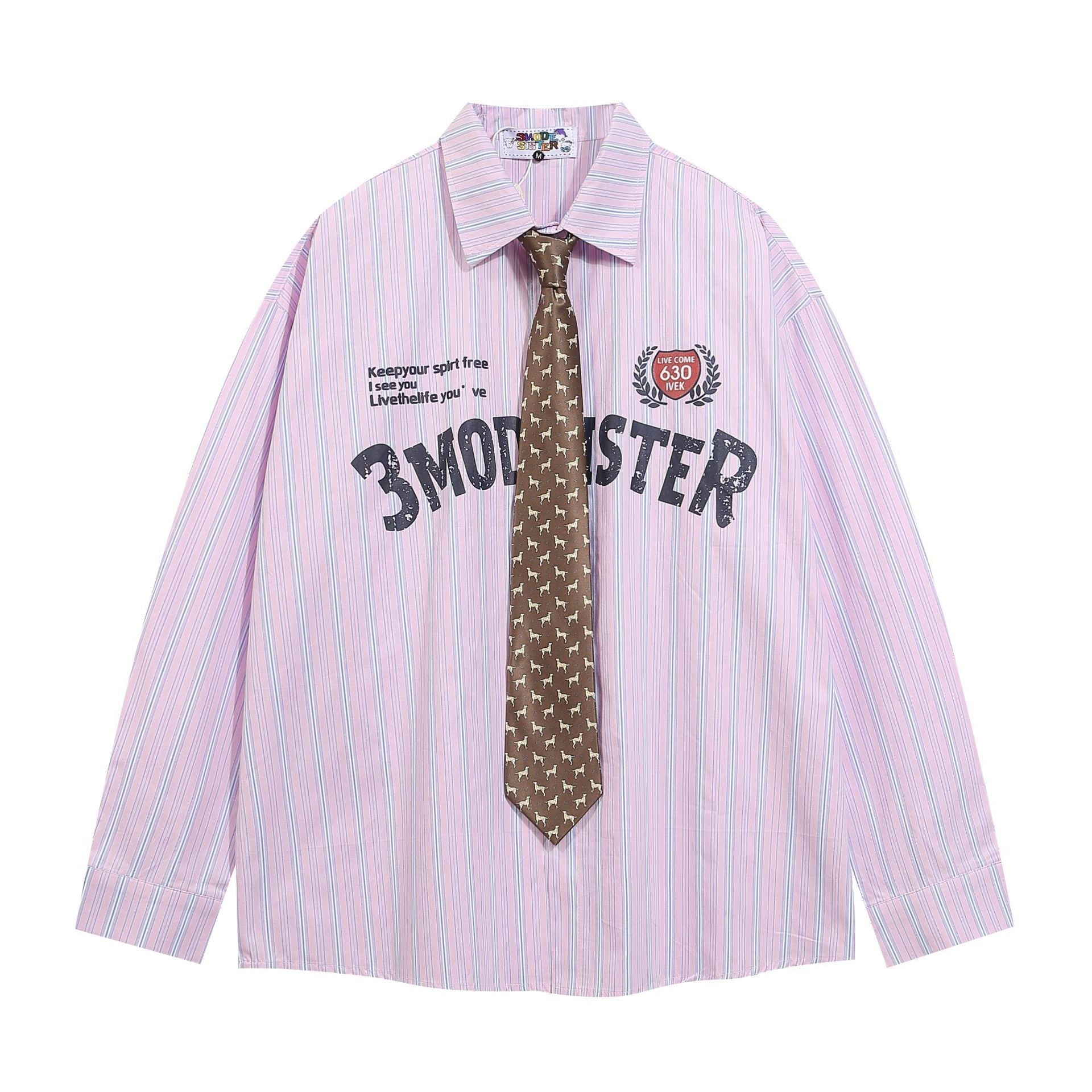 The Loose Fit Tie-Stripe Shirt combines a relaxed silhouette with playful tie stripes. making it a versatile and stylish choice for any casual occasion.