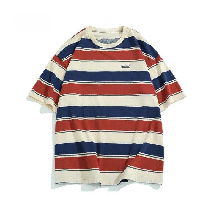 Discover comfort and style with our Loose Main Striped T-Shirt. Made from a blend of cotton. polyester. and Lycra. featuring an O-Neck collar and striped pattern.
