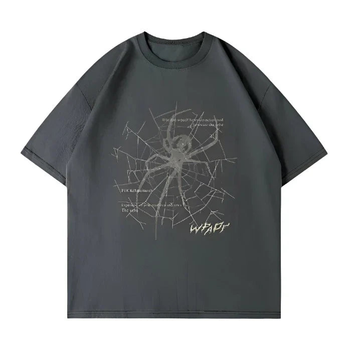 Introducing our Loose Spider Vintage T-shirt: crafted from premium cotton. it boasts a distinctive loose fit and vintage-inspired spider graphic for a unique. laid-back style. Versatile enough to pair with jeans or shorts. it's perfect for casual occasions. Add a dose of retro charm to your wardrobe with this standout piece.