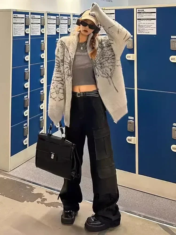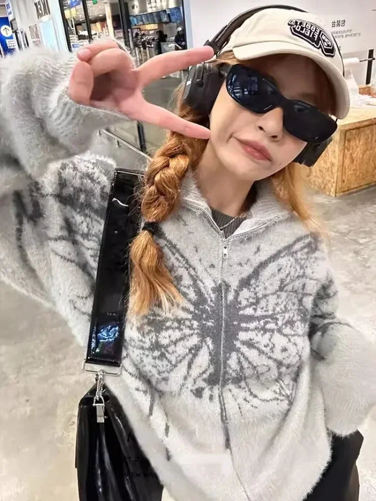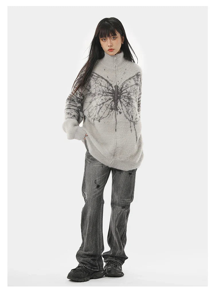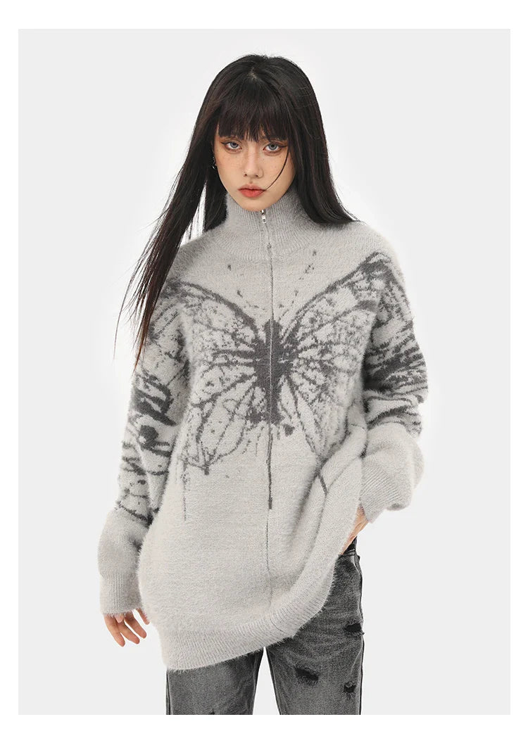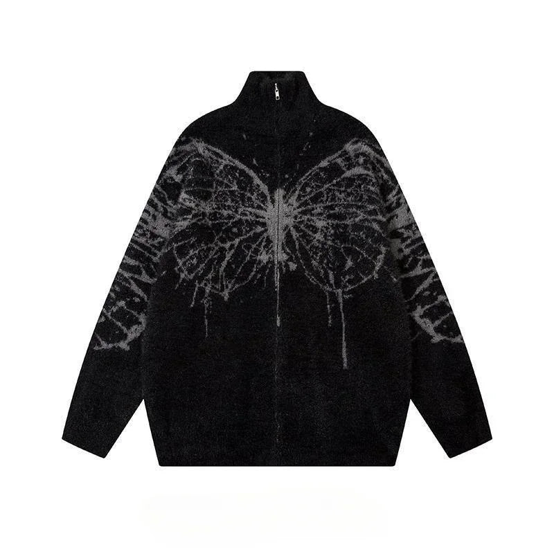 Luna Moth Zip-Up Heavy Sweater: Cozy warmth with a mystical vibe. detailed zip-up. ideal for layering with style.