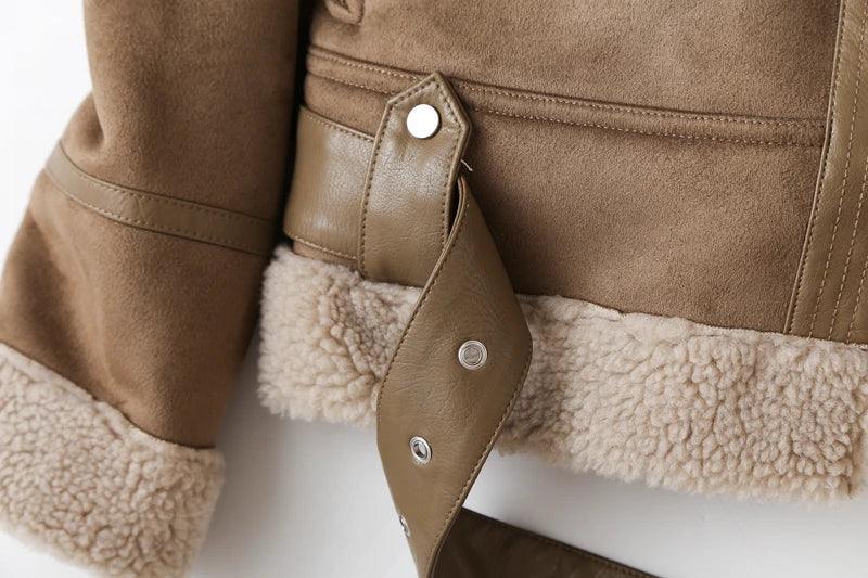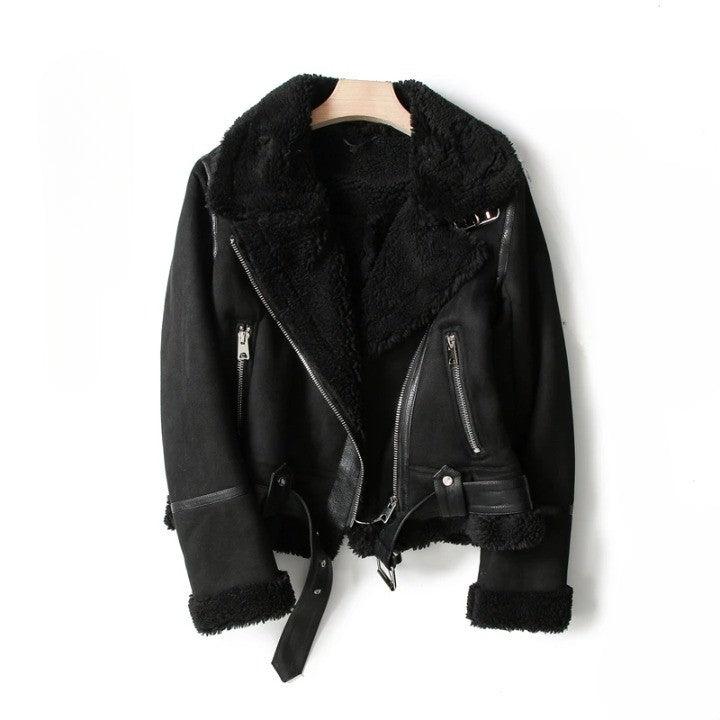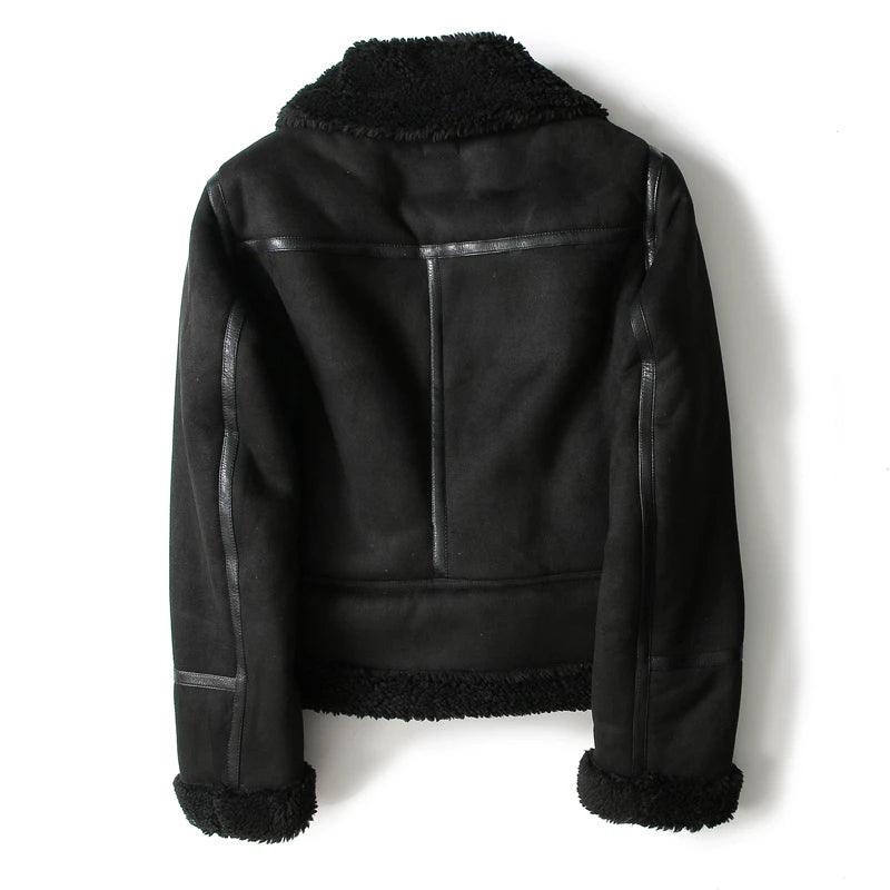 Elevate your street style with this Luxury Aviator Shearling Bomber Jacket. Vintage y2k design featuring patchwork. zippers. and a cozy thick material.
