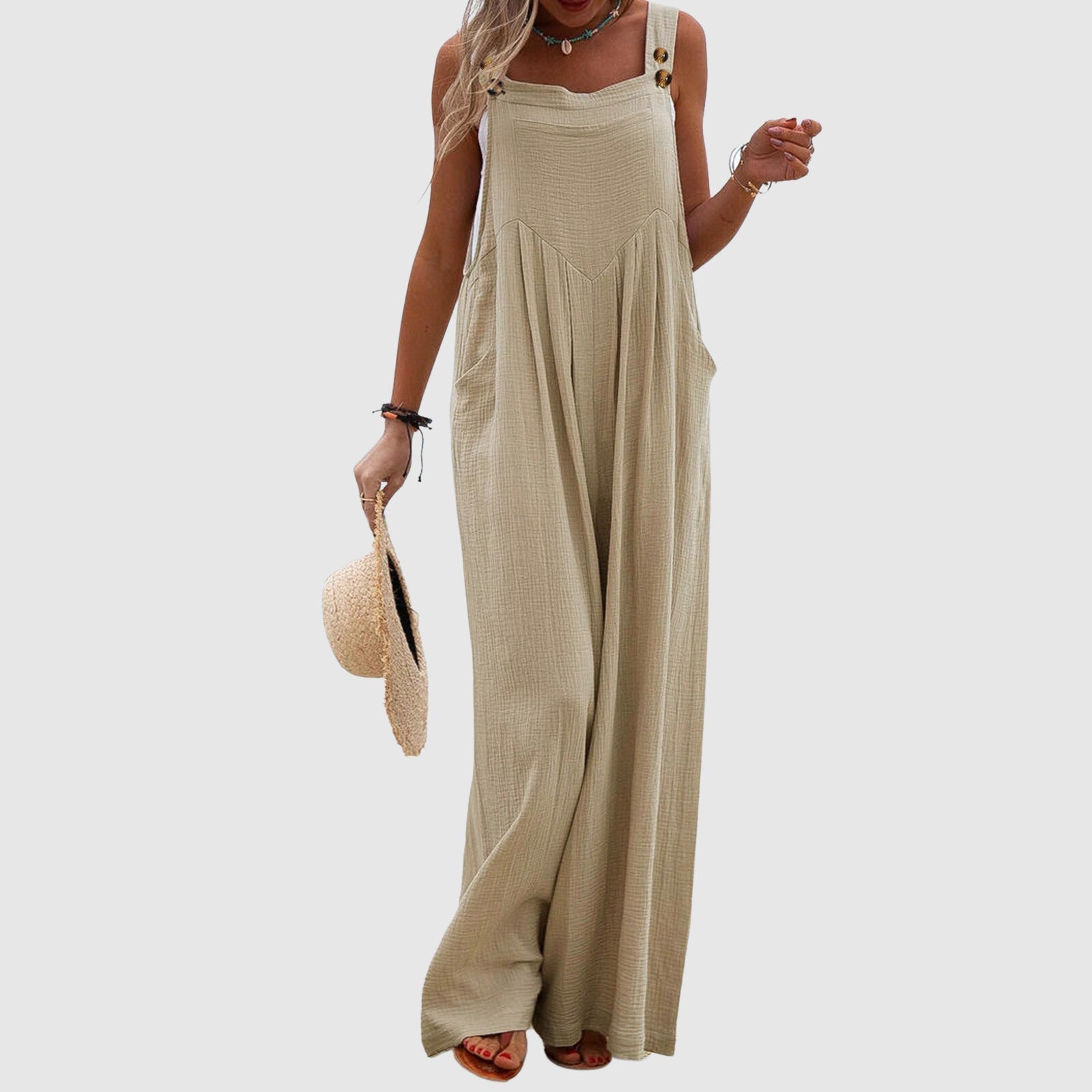 Experience the essence of boho chic with the Malin Tassou Hawaii Beach Overall. Crafted with a vintage-inspired design. these loose-fitting overalls exude a laid-back beachwear vibe. The extra wide-leg pants and convenient side pockets add a practical yet stylish touch. making it the perfect choice for those seeking both comfort and fashion.