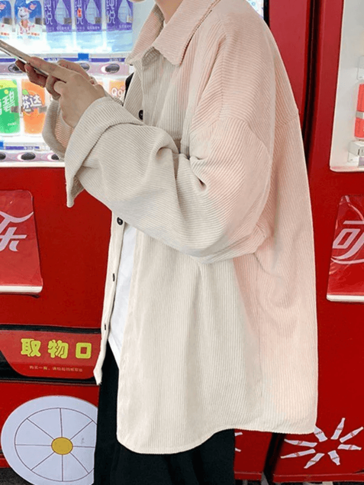 Description: Crafted from corduroy fabric. cuts to a flattering silhouette. features patched pockets to the front chest. with button closure and dropped long sleeves design.