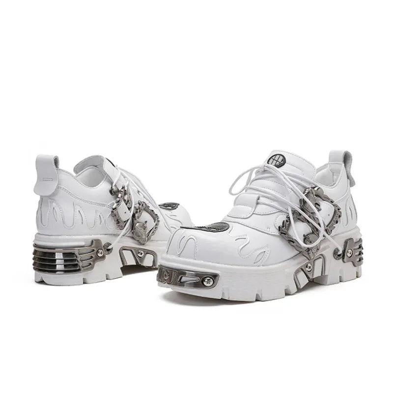 The Metal Edge Lace-Up Platform Sneakers feature striking metal details and a bold platform sole. perfect for elevating your streetwear style with an edgy. modern twist.