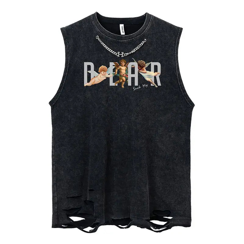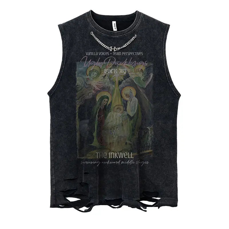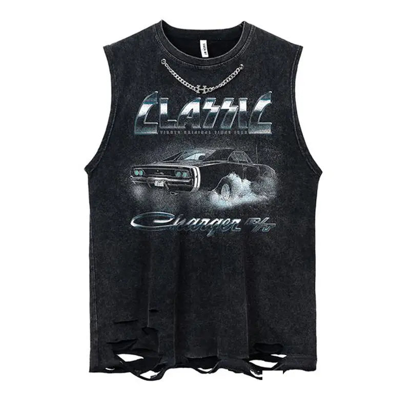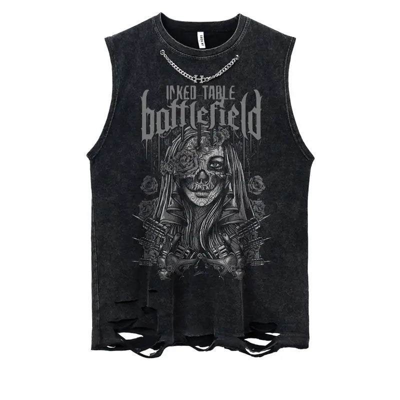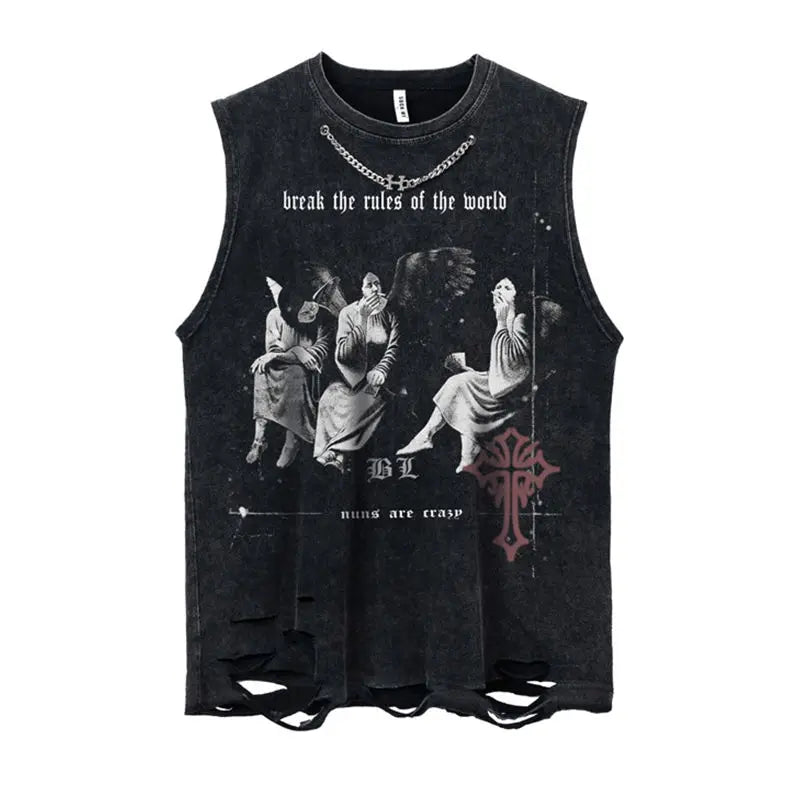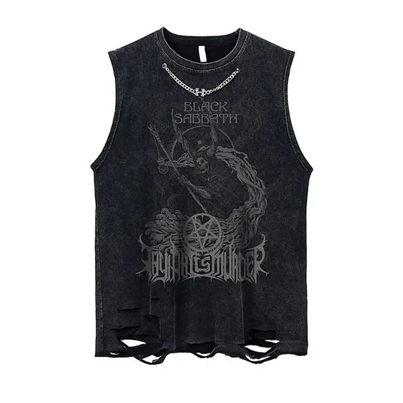 The Metal Embellished Rose Washed Distressed Tank Top combines rugged style with a touch of elegance. Featuring distressed detailing. metal accents. and a faded rose graphic. this tank offers a bold yet chic look. perfect for adding an edgy twist to your streetwear.