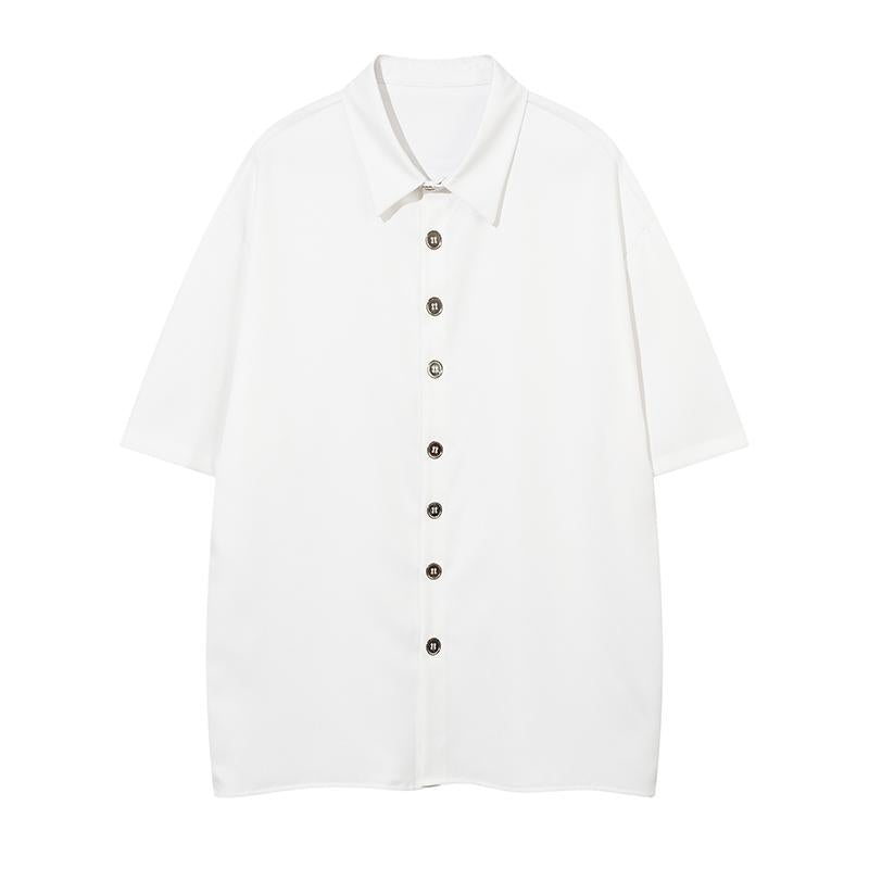 Explore the Metallic Buttons Short Sleeve Shirt by VONVEX Clothing. Made from high-quality polyester. this stylish shirt features metallic buttons. Shop now!