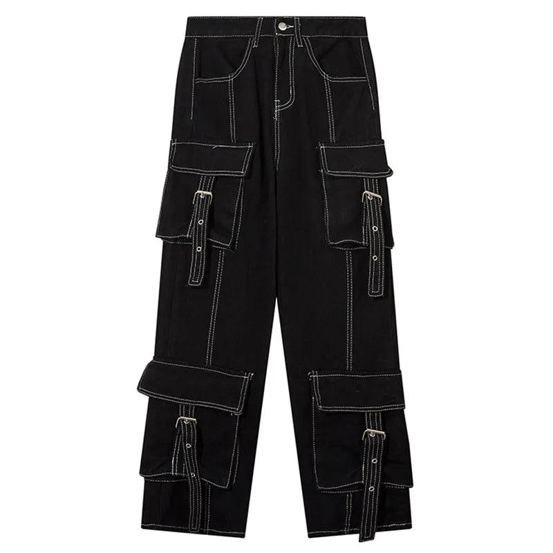 Elevate your street style with our Multi-Pocket Wide Leg Jean. Vintage-inspired denim featuring a zipper fly. multiple pockets. and a loose fit for Y2K vibes.