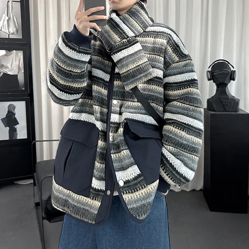 Neckerchief Design Striped Contrast Color Jacket brings a unique twist with bold stripes and contrast hues. combining classic style with a modern edge.