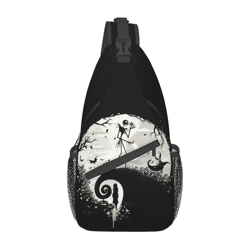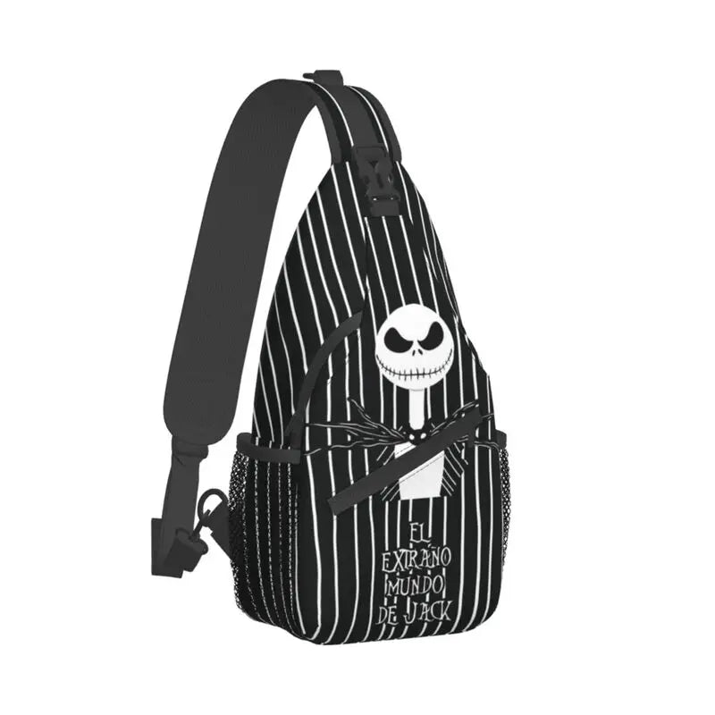 The Nightmare Jack Backpack blends spooky style with practicality. Featuring eerie graphics and ample storage. this backpack is perfect for those who want to add a dark. playful twist to their everyday streetwear.