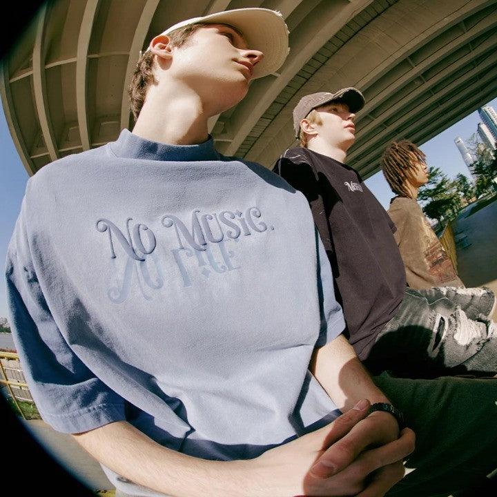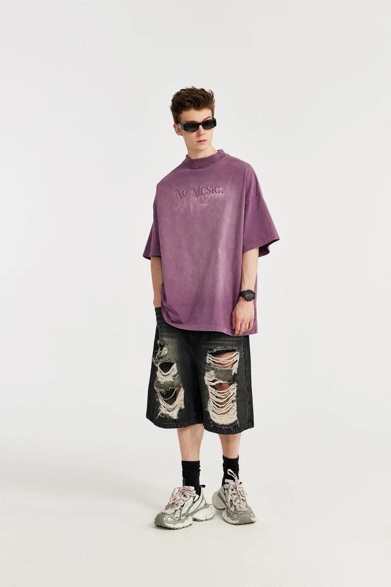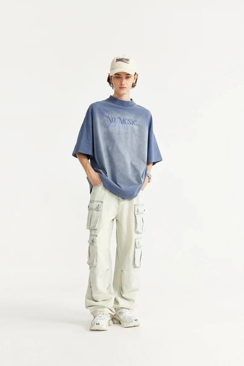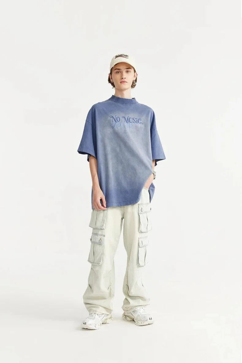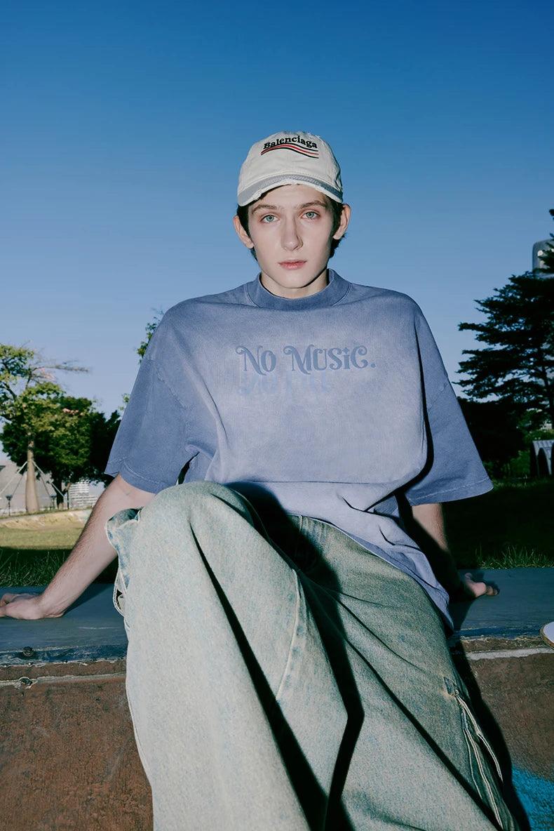 Introducing our NO MUSIC Washed Oversized T-Shirt. Made from a comfortable cotton broadcloth with a unique letter pattern and an O-Neck collar.