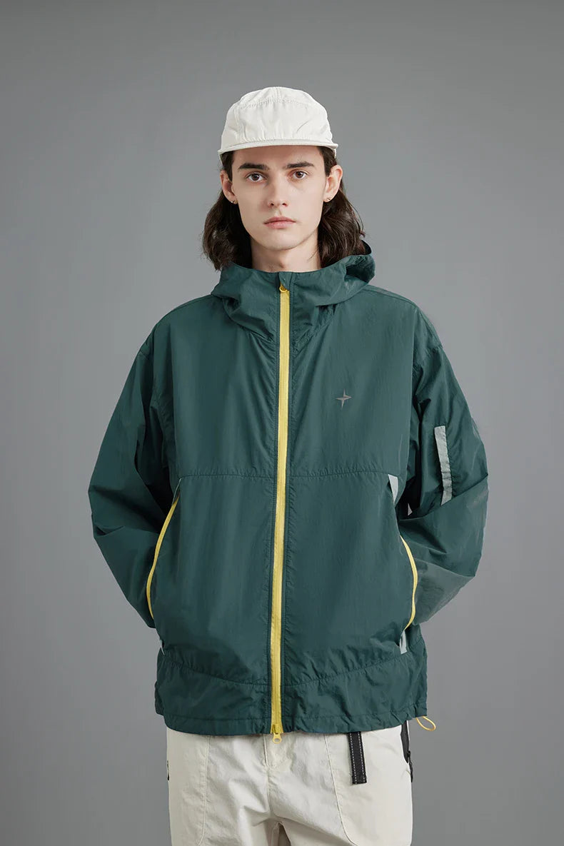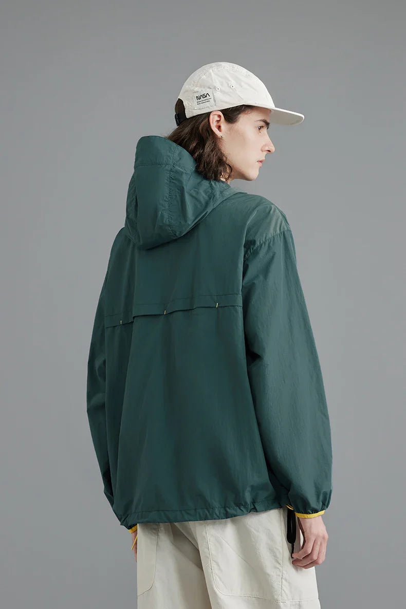 Introducing Vonvex's Outdoor Double Hooded Zipper Jacket. Crafted from nylon and polyester with a knit weave. this thin. loose-fitting jacket offers regular length and a solid pattern. Features a double hood. zipper closure. ribbed cuffs. and polyester lining for comfort and style. Perfect for versatile outdoor wear.