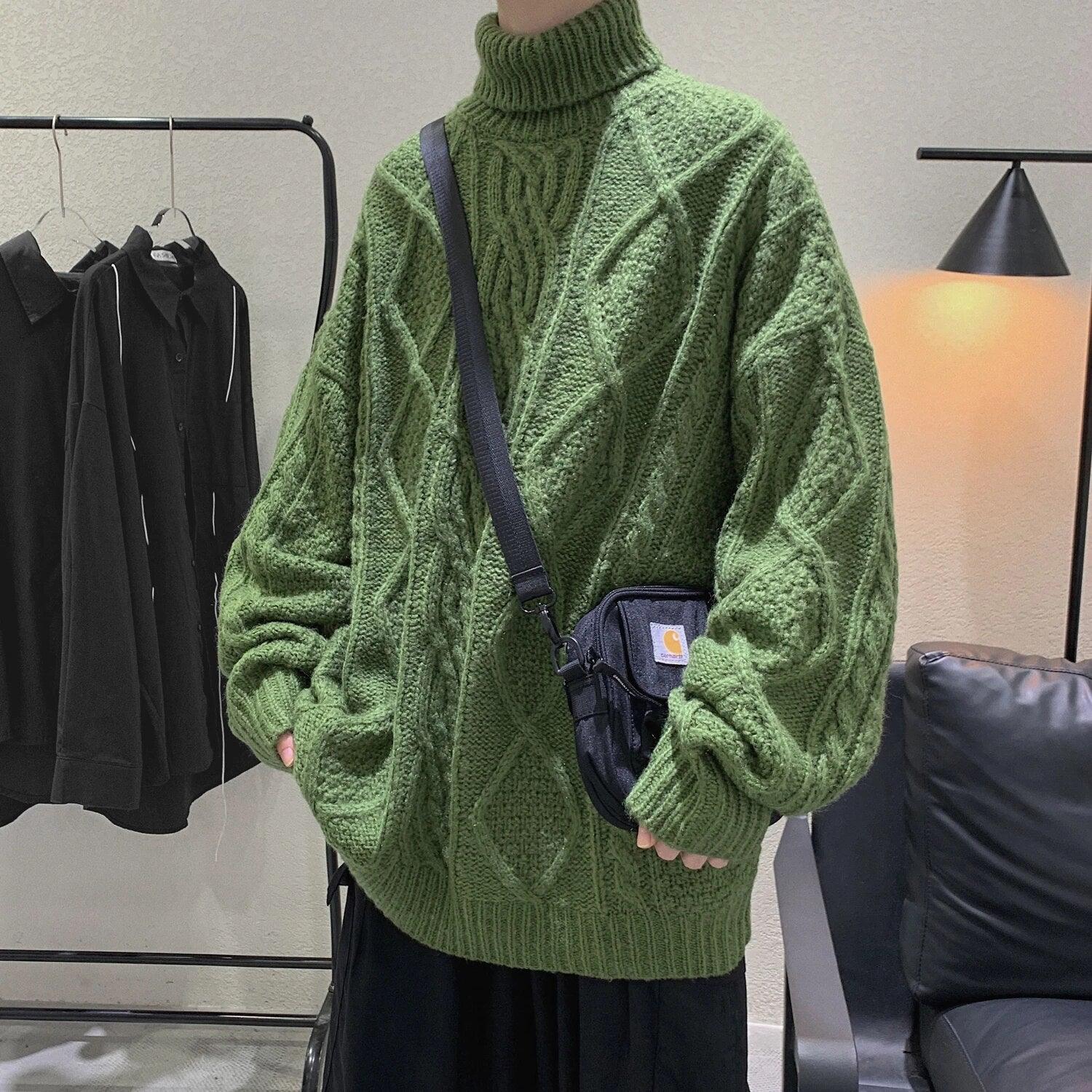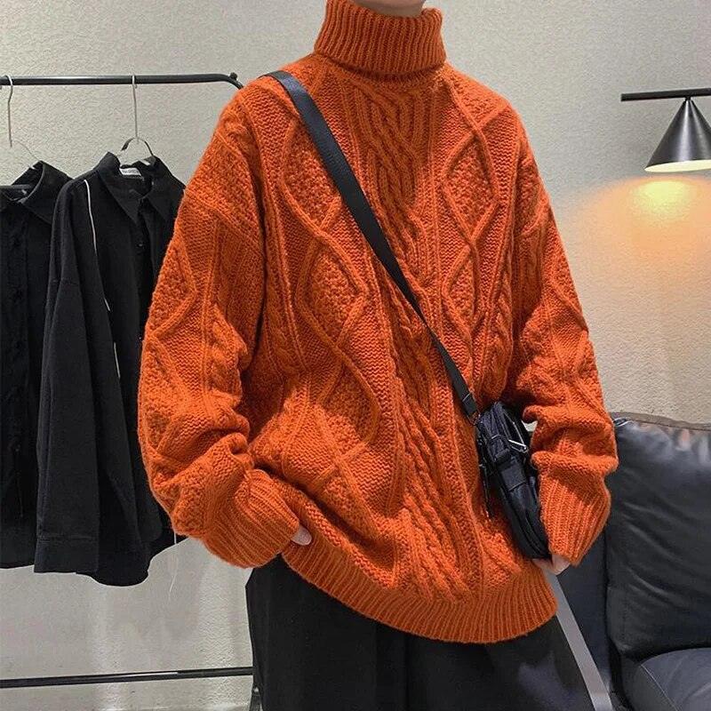 A turtleneck knitted sweater is a timeless and versatile piece of winter clothing. It is designed with a high. folded collar that covers and protects the neck from the cold. making it perfect for chilly weather. This type of sweater is beautifully crafted using a knitting technique. which creates a distinctive ribbed texture and a chunky. cozy feel.