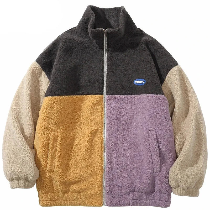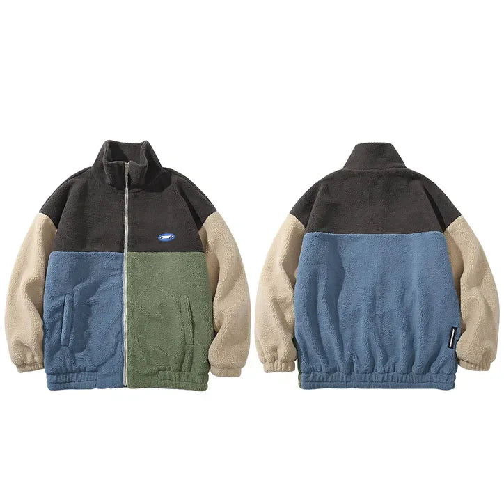 Patchwork Color Blocks Furry Jacket offers a bold blend of textures and colors. making it a statement piece for chilly days.