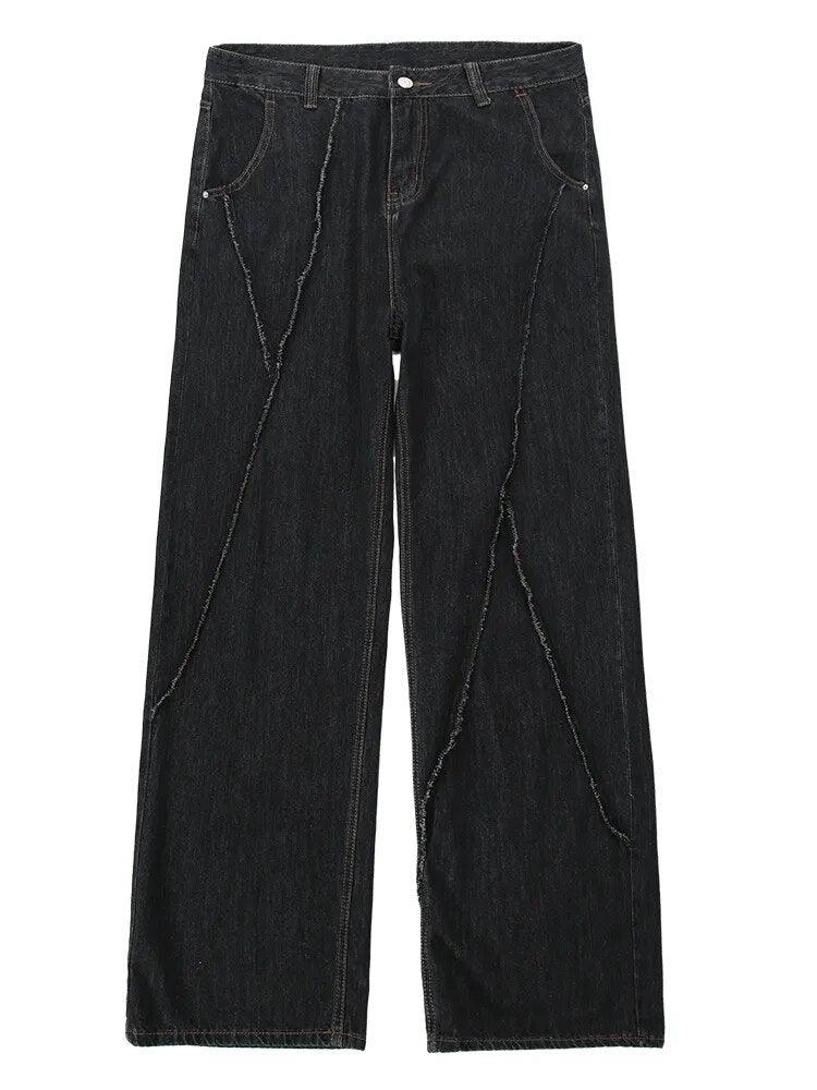 Closure Type: Button Fly. Decoration: Spliced. Pattern Type: Patchwork. Fit Type: Loose. Length: Full. Thickness: Midweight. Waist Type: Mid. Material: Denim.