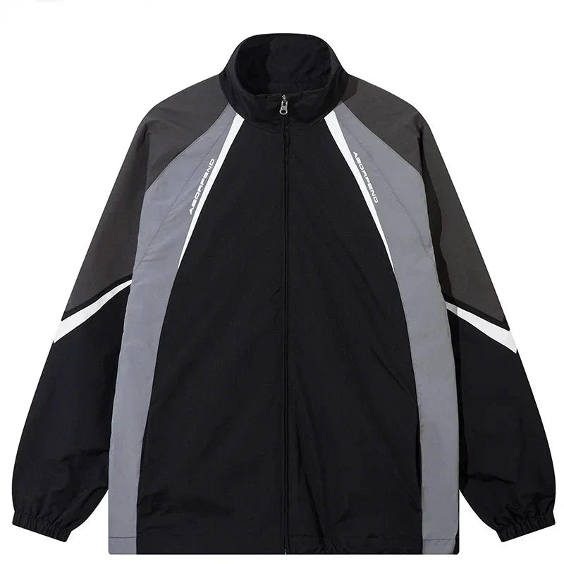 Patchwork Striped Zipper Thin Jacket adds a touch of edge with its unique stripe detailing and lightweight feel. Perfect for layering!