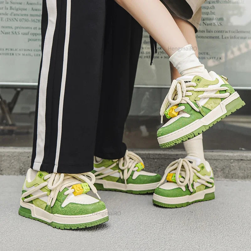 Introducing Petal Bloom Sneakers. featuring a vibrant mixed color pattern. These lace-up skateboard shoes are lined with polyester. offering a stylish blend of comfort and durability for your everyday adventures.
