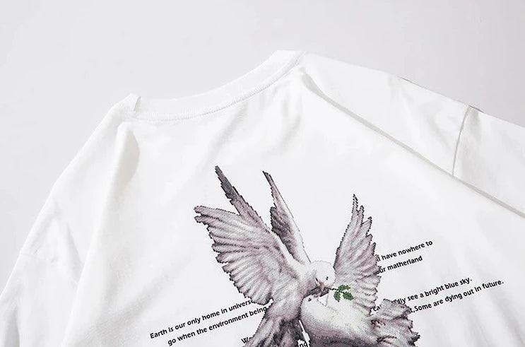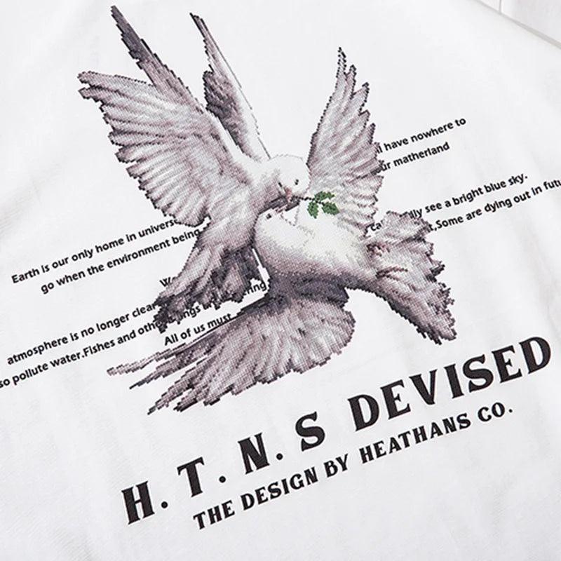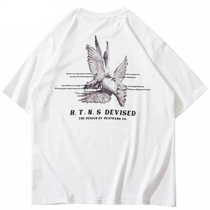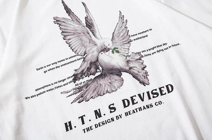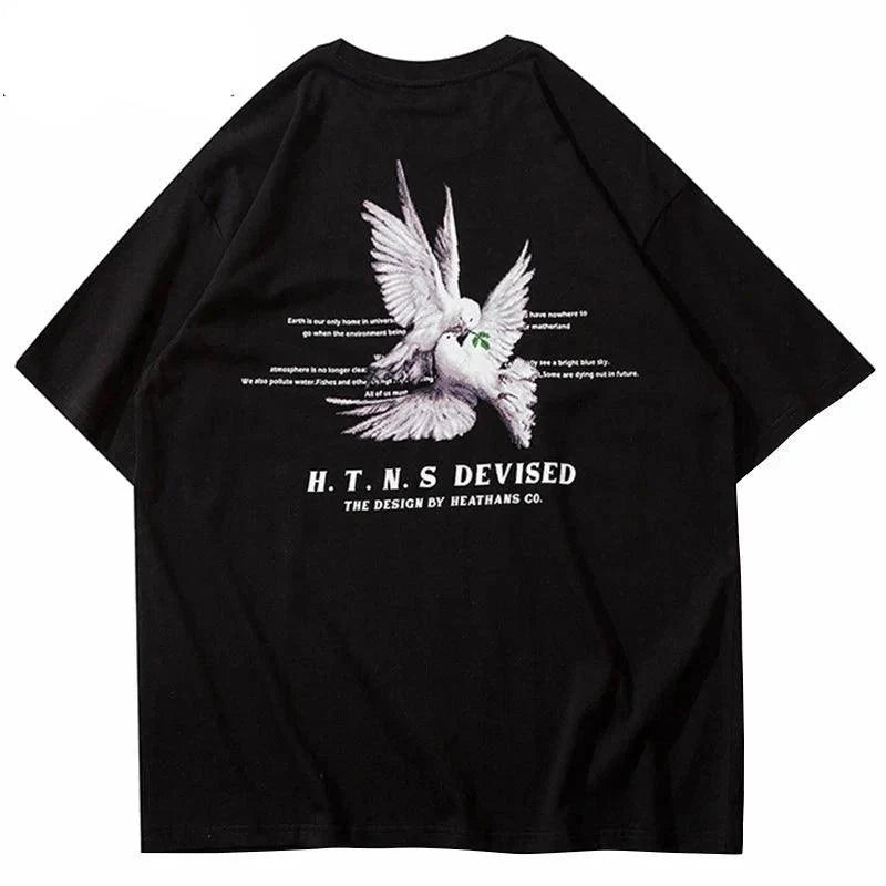 "Elevate your style with our Pigeon Letter Printed T-Shirt. Vintage-inspired design meets gothic flair. crafted from comfortable cotton broadcloth."