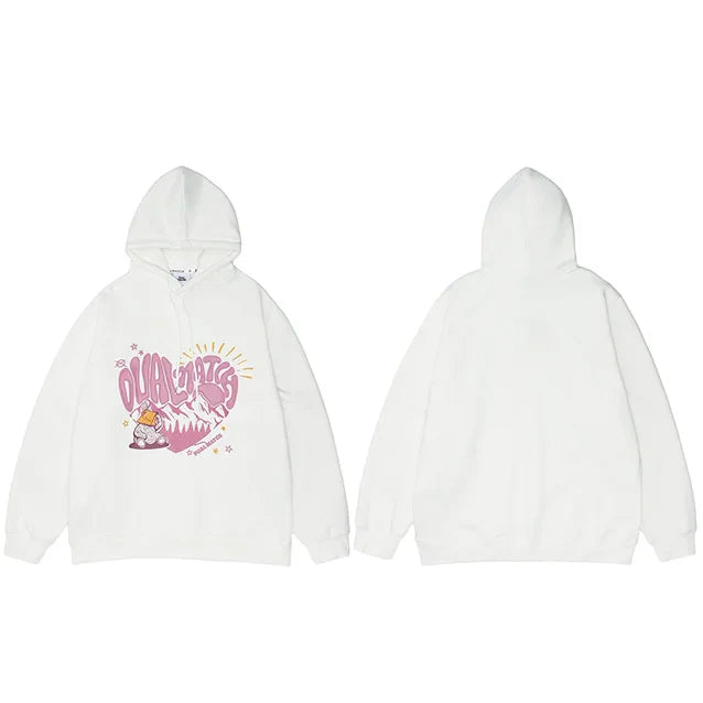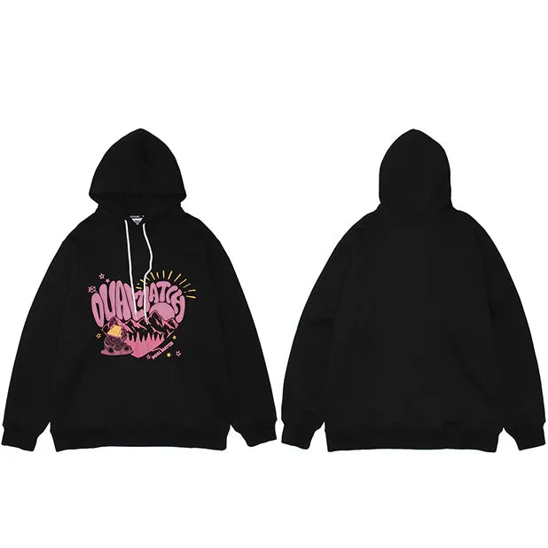 The Pink Heart Mountain Hoodie combines warmth with a touch of charm. featuring a cozy design and a playful heart-and-mountain graphic that elevates any casual look.