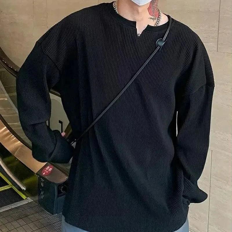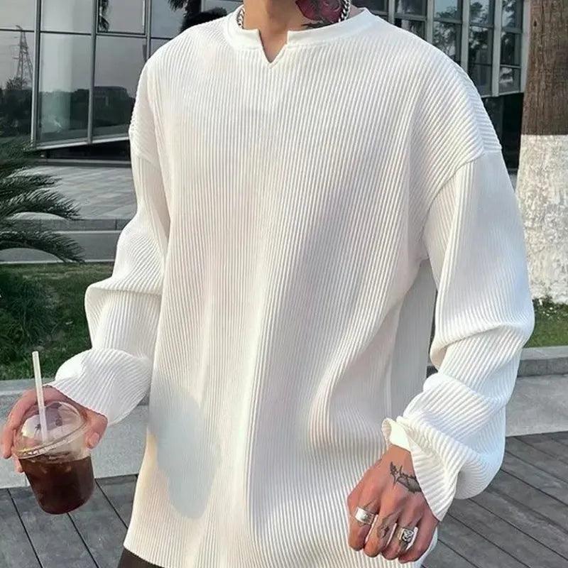 Upgrade your wardrobe with Vonvex's Pleated Stripe V-Neck T-Shirt. Featuring a stylish V-neck. solid pattern. and pleated batik fabric for a chic look!