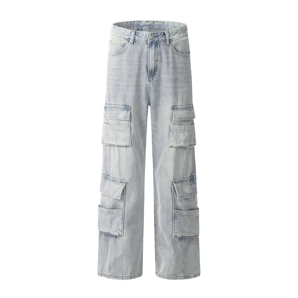 Punk Denim Cargo Pants: Edgy and functional. featuring a rugged denim design with multiple cargo pockets for a bold. rebellious look. Perfect for standout streetwear.