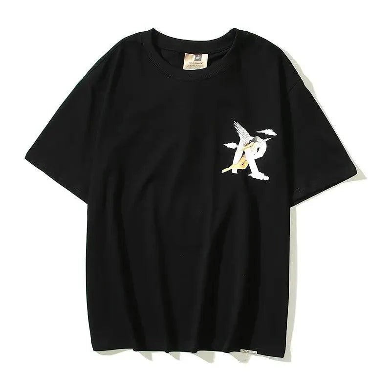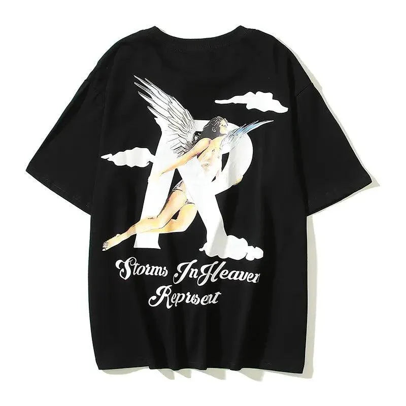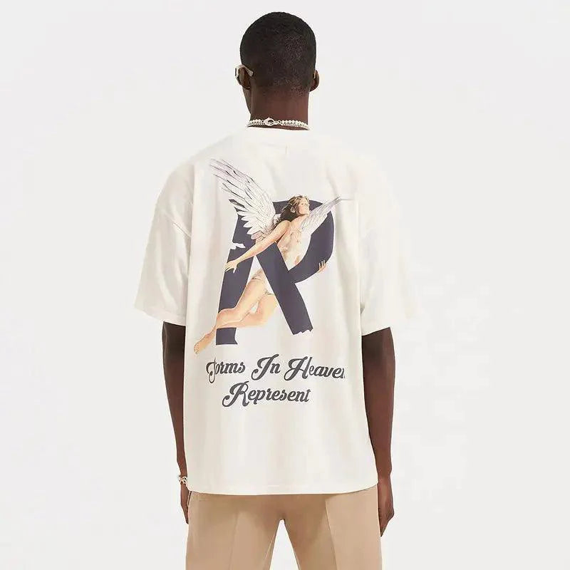 "Elevate your summer look with our R-Shaped Angel Cloud Printed T-Shirt. Made from high-quality cotton. this tee offers both comfort and style. Featuring a mesmerizing R-shaped angel cloud print. it adds a unique and ethereal touch to your outfit. With a regular sleeve style and an O-neck collar. it effortlessly channels a trendy vibe. Available in sizes M to XXL and in classic black. pink. and green colors. it's suitable for both men and women. Crafted from 100% cotton. it ensures a soft and comfortable fit. Upgrade your summer wardrobe with our R-Shaped Angel Cloud Printed T-Shirt today!"