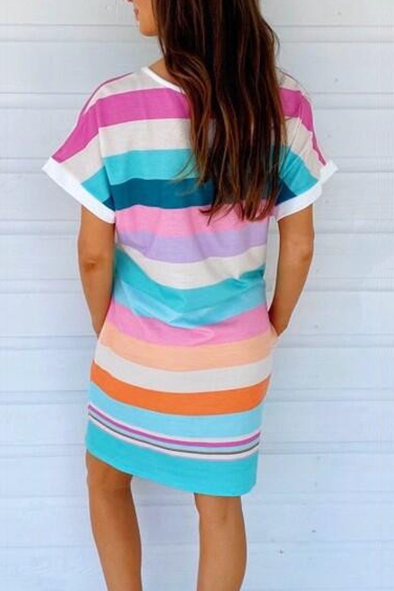 Rainbow Stripe Short Sleeve Dress