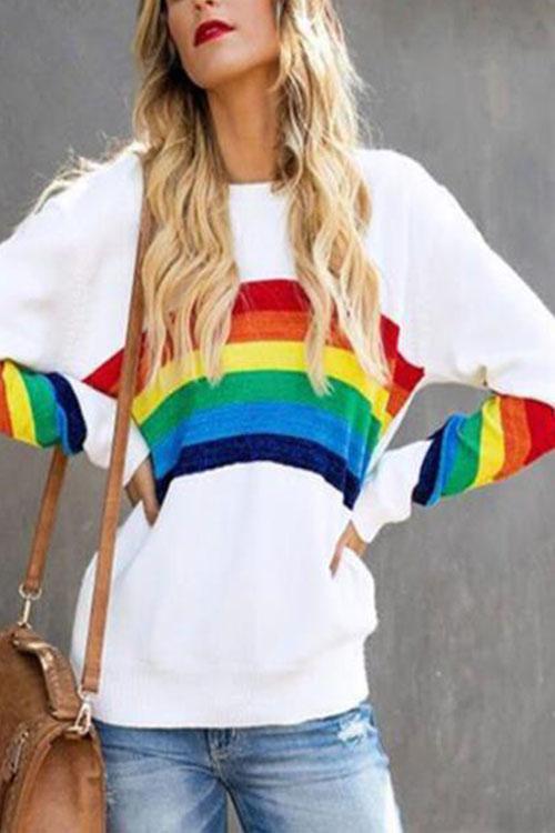 Rainbow Striped White Sweater