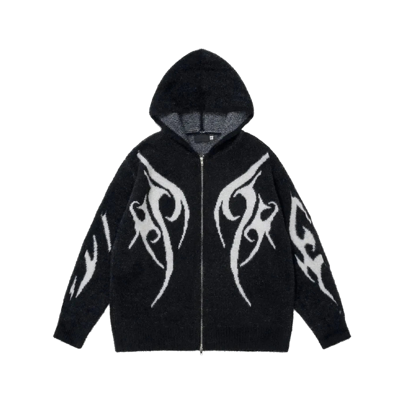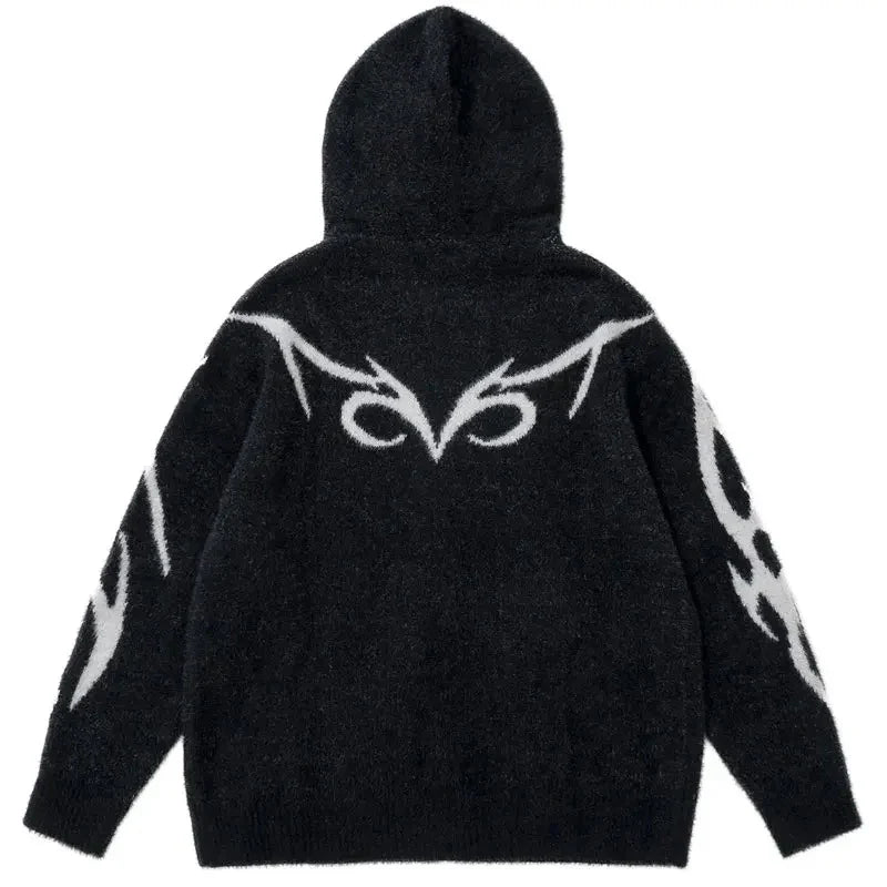 The Raven Eyes Zipper Hoodie showcases striking raven-themed graphics with a sleek zipper design. blending dark. edgy style with practical comfort.
