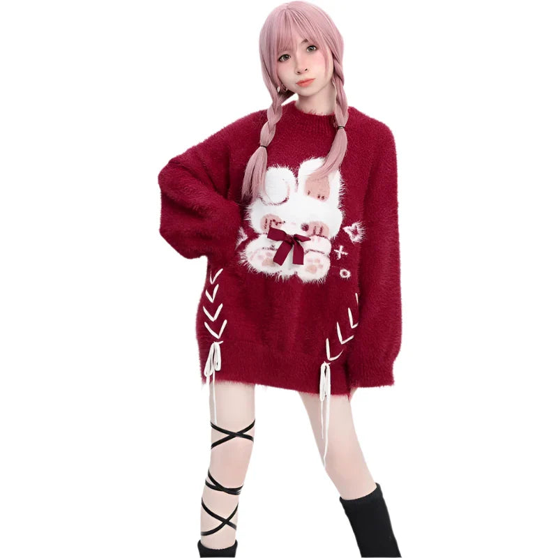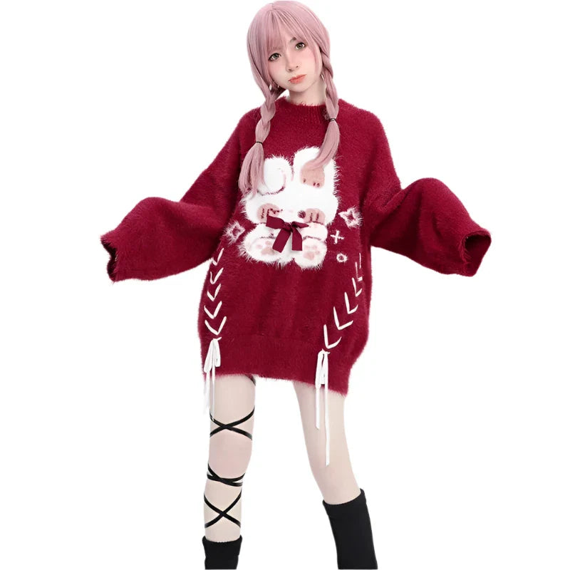 "Red Kawaii Bunny Sweater: Cute and cozy. featuring an adorable bunny design in a vibrant red knit."
