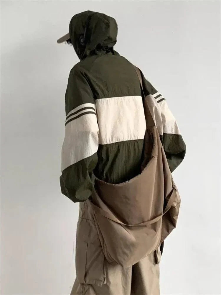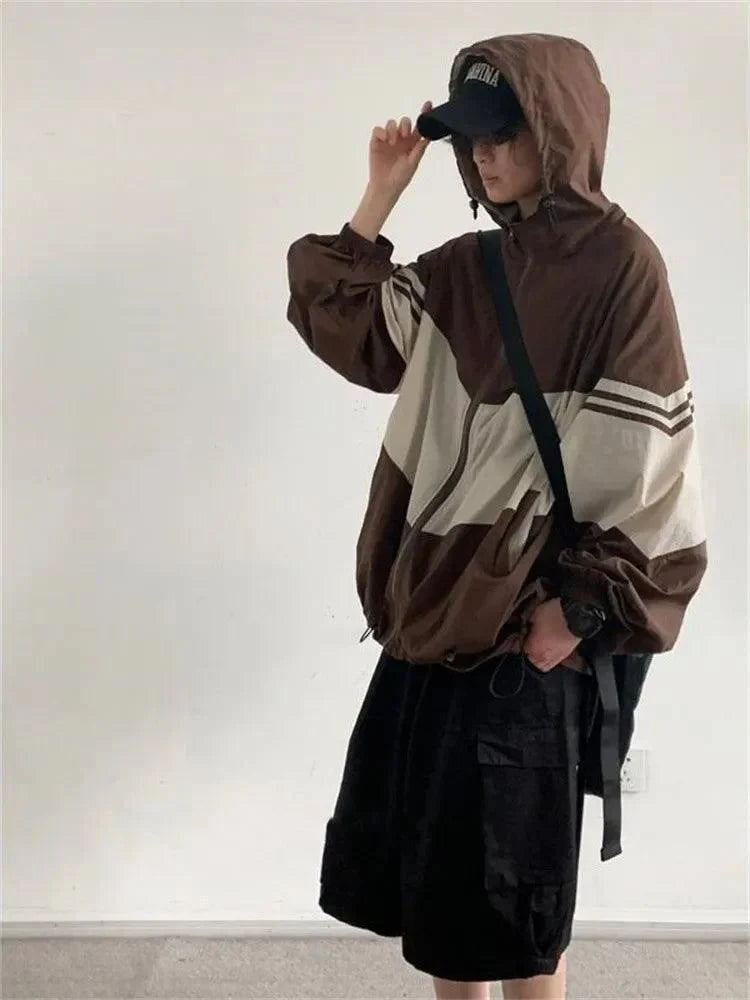 Step into street style with our Retro Patchwork Hooded Jacket. Vintage vibes meet Y2K flair in this loose-fit polyester jacket. featuring vintage decoration and a zipper closure.