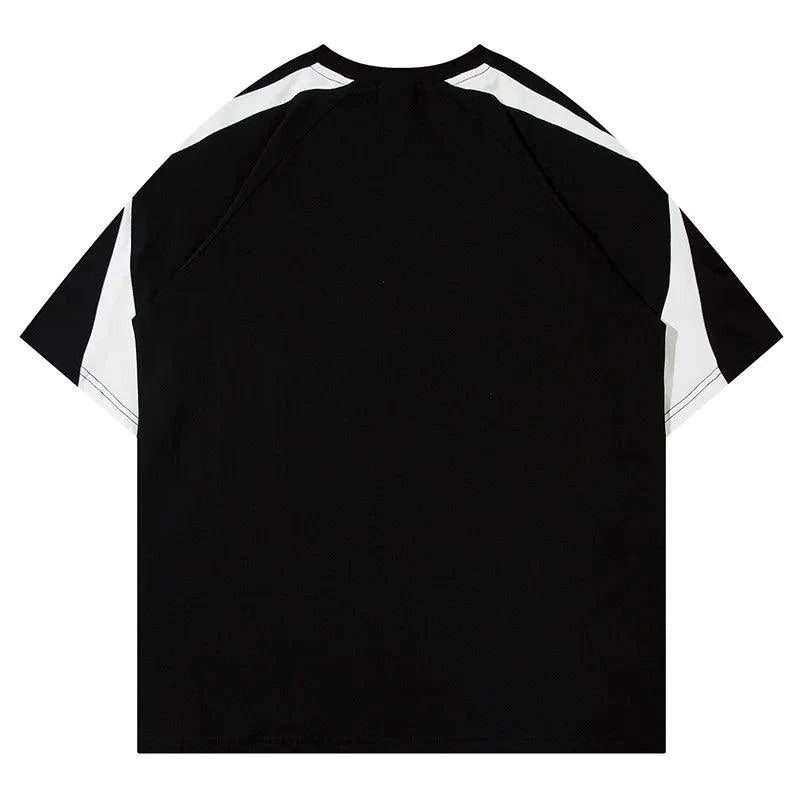 Introducing our Retro Patchwork Oversized Striped T-Shirt. a fusion of retro and modern streetwear. Crafted from soft cotton with short sleeves and an O-neck collar. it offers both comfort and style. The broadcloth fabric ensures durability. while the bold patchwork stripes add a unique touch. Perfect for making a statement. whether you're hitting the streets or hanging out with friends. Elevate your streetwear game with this must-have tee from our brand.