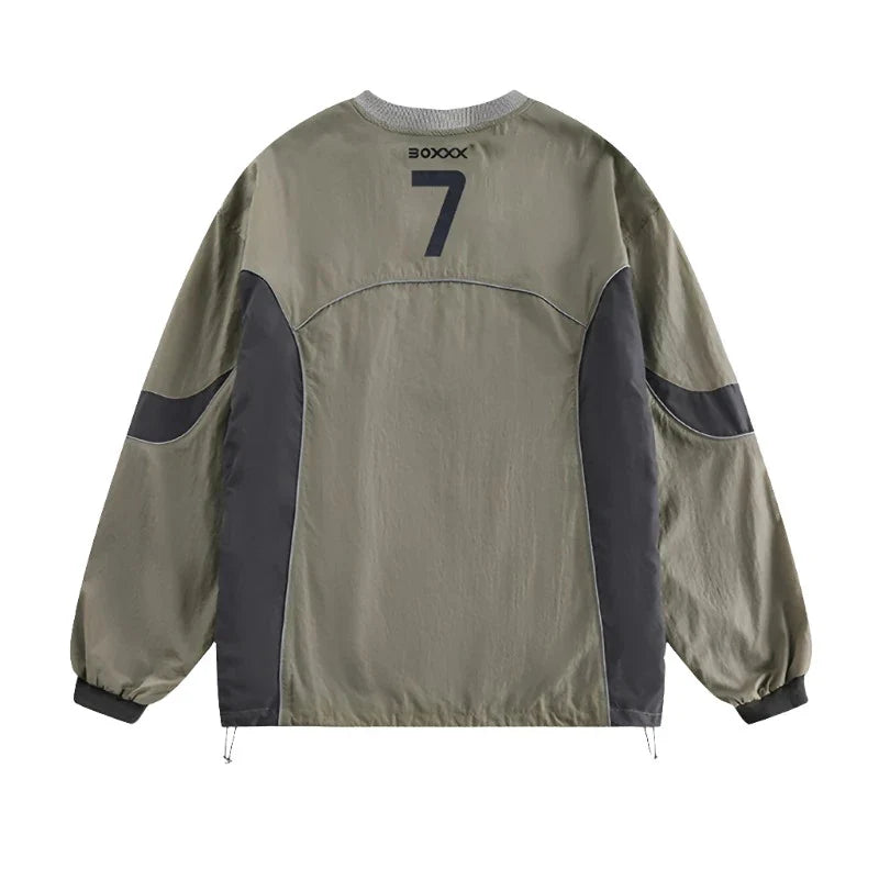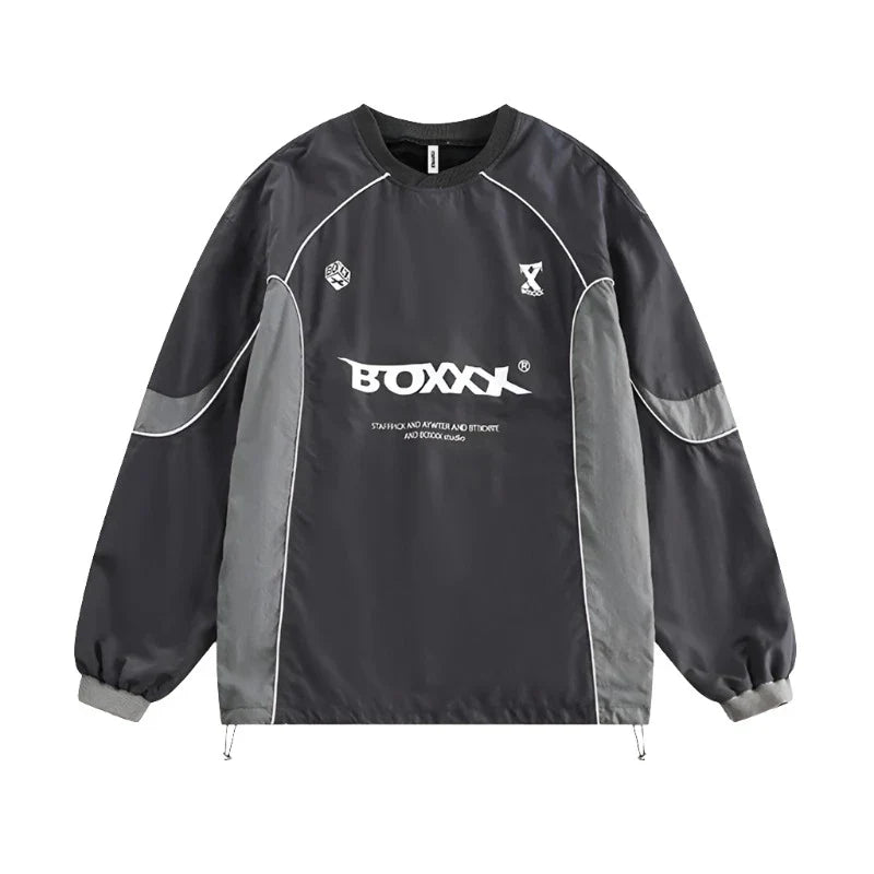 Vonvex Streetwear's Retro Patchwork Oversized Sweatshirt. made from lightweight polyester. features a trendy letter pattern. loose fit. and comfortable O-neck. Perfect for a stylish. casual look.