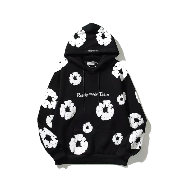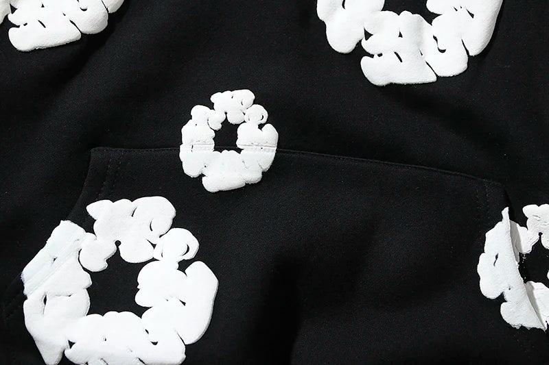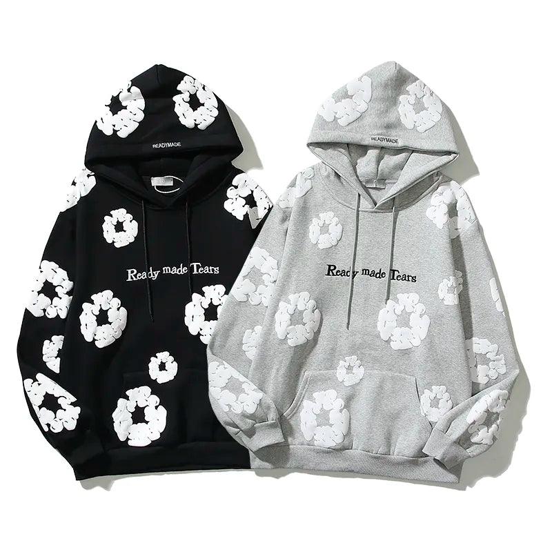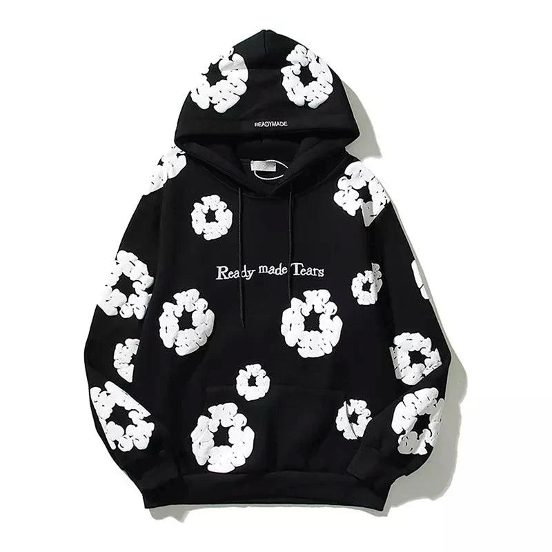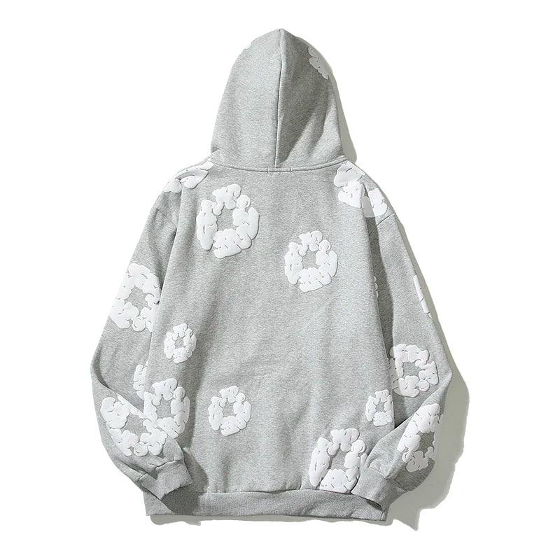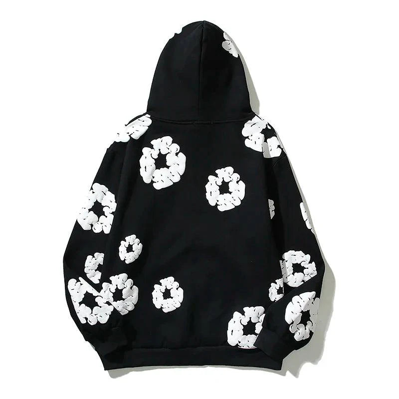 Elevate your style with our Retro Printed Flower Hoodie. Crafted from cotton with full sleeves. fleece lining. and loose fit for ultimate comfort.