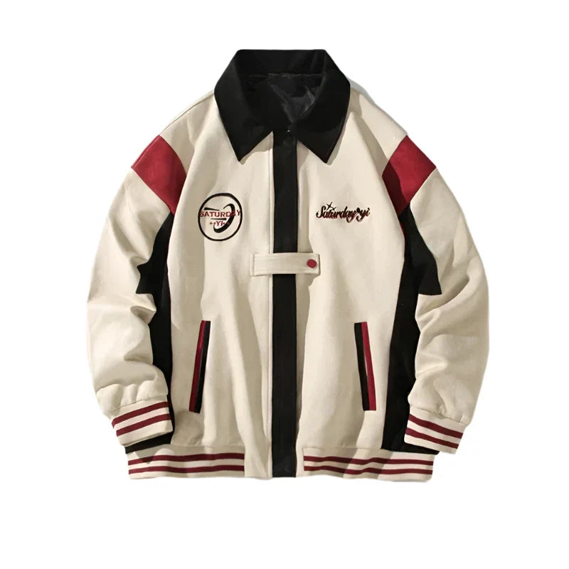 The Retro Status Varsity Jacket blends classic collegiate style with a modern twist. Featuring bold graphics and a sporty silhouette. this jacket adds a nostalgic touch to your streetwear. perfect for making a statement while staying stylish and comfortable.
